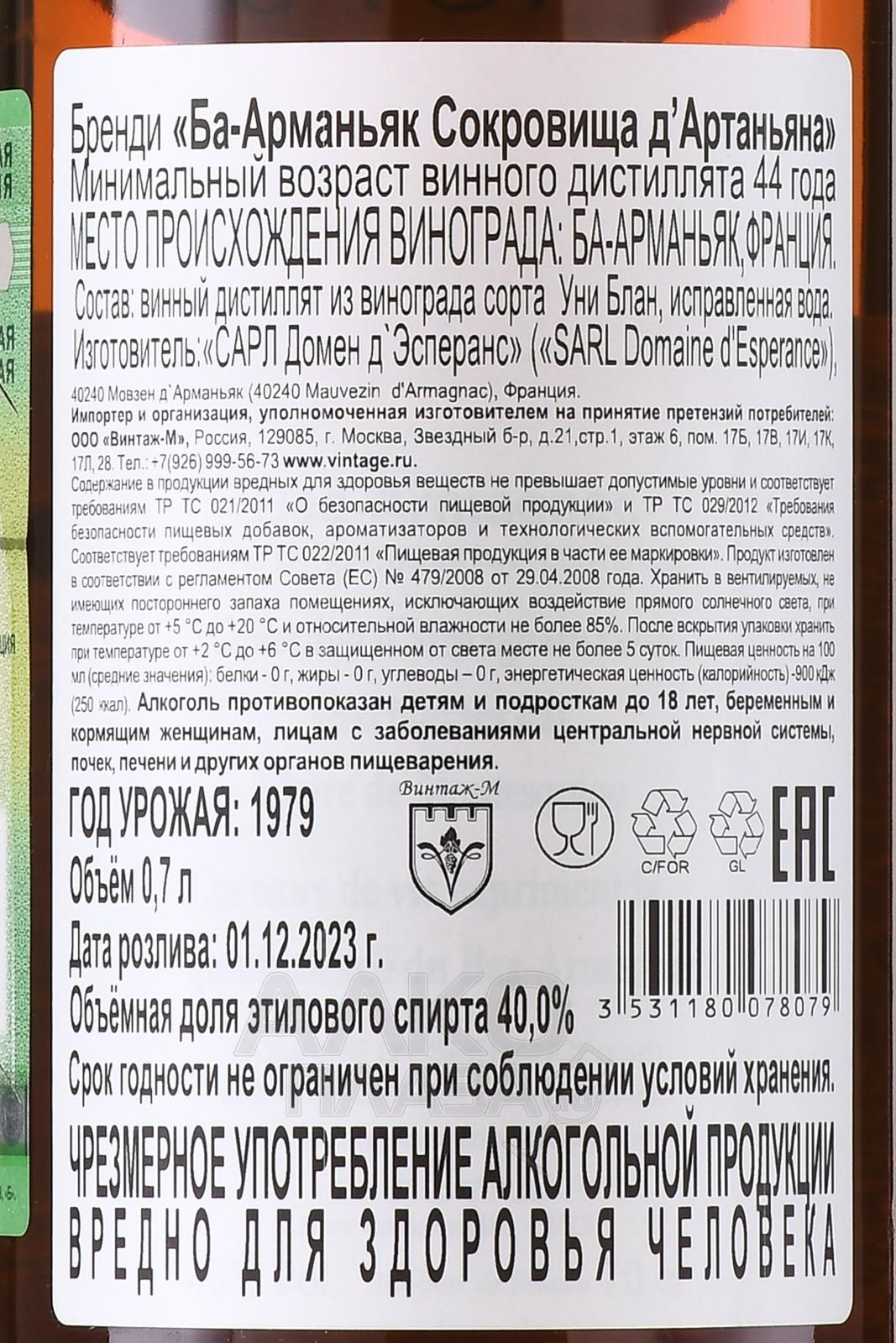 Chateau d’Esperance 1978 - арманьяк Шато д’Эсперанс 1978 года 0.7 л