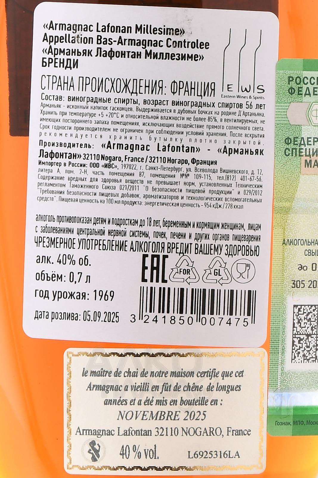 Lafontan 1969 - арманьяк Лафонтан 1969 года 0.7 л