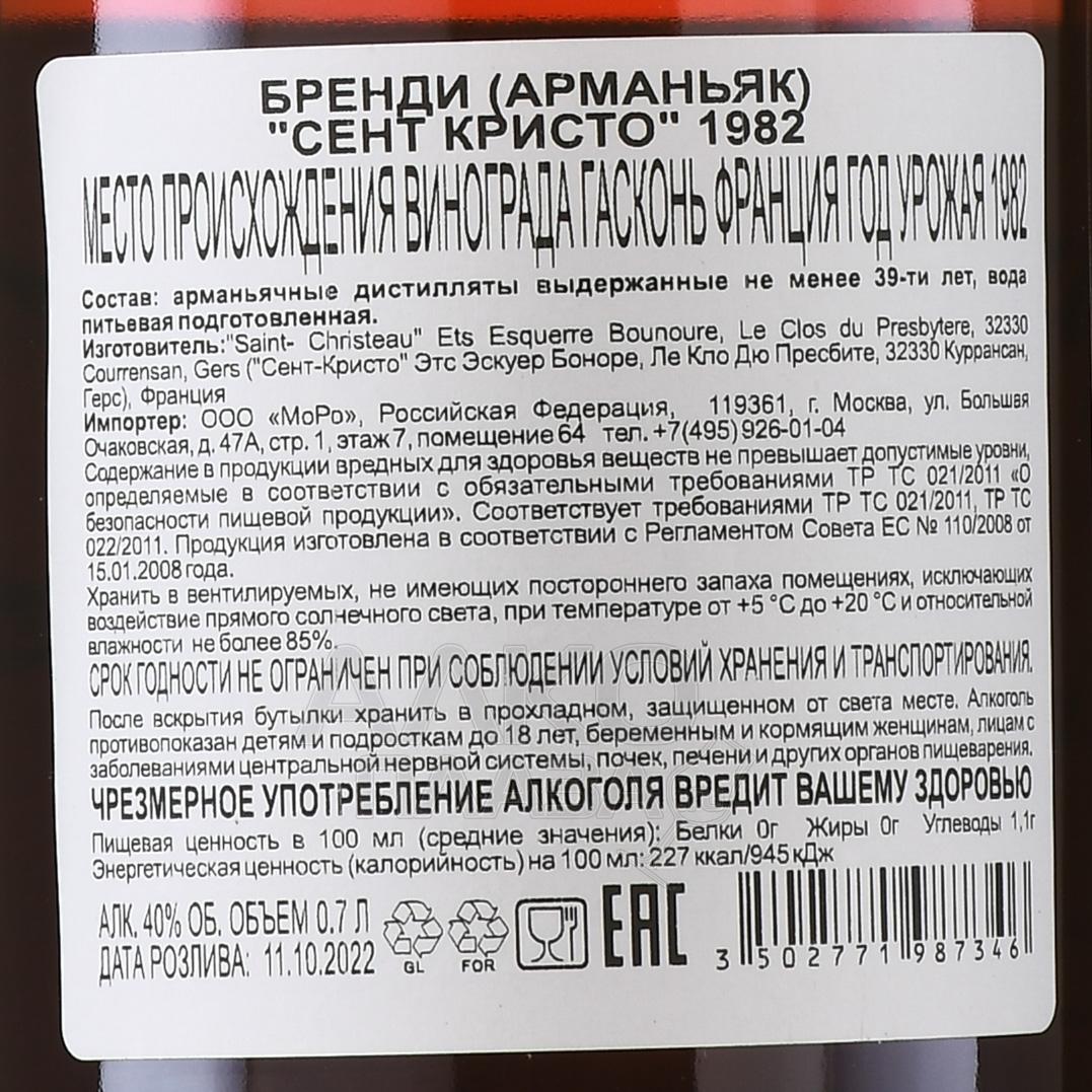 Armagnac Saint Christeau Millesime 1982 - арманьяк Сент Кристо Миллезимэ 1982 года 0.7 л в п/у