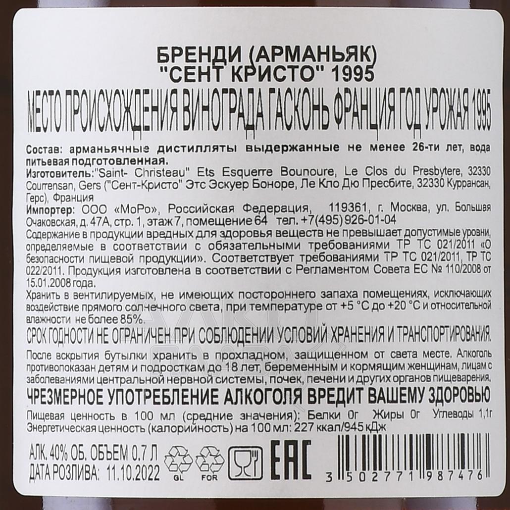 Armagnac Saint Christeau 1995 - арманьяк Сент Кристо 1995 года 0.7 л в п/у