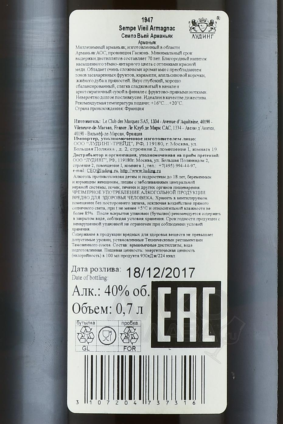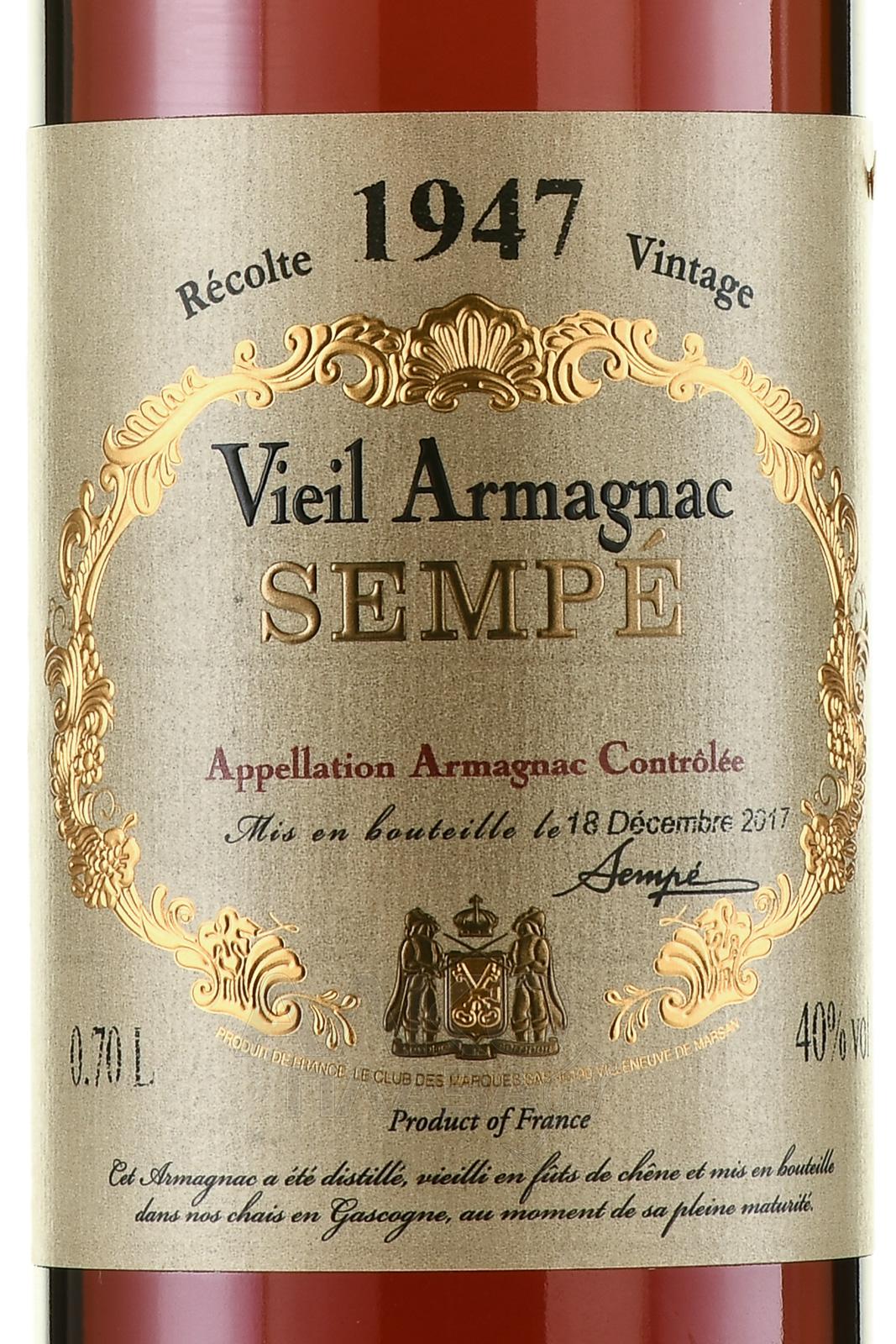 Sempe 1947 Wooden Box - арманьяк Семпе 1947 год 0.7 л в д/у