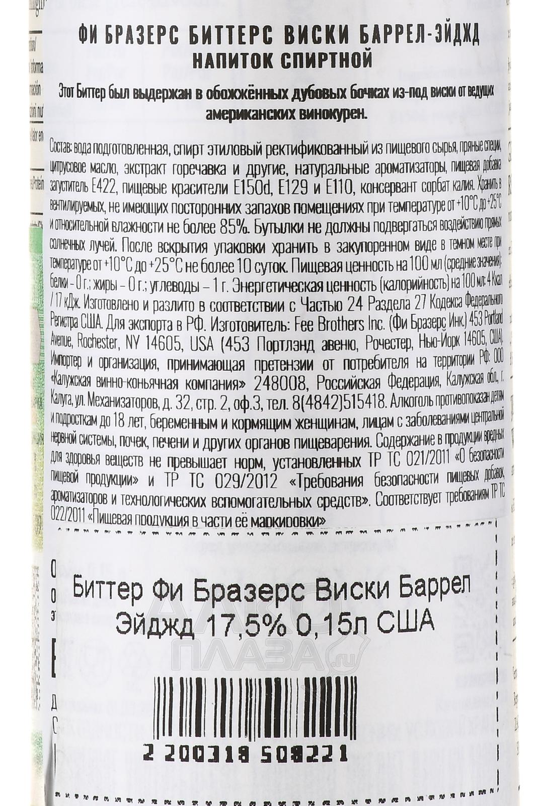 Fee Brothers Whiskey Barrel-Aged Bitter - биттер Фи Бразерс Виски Баррел-Эйдж 0.15 л