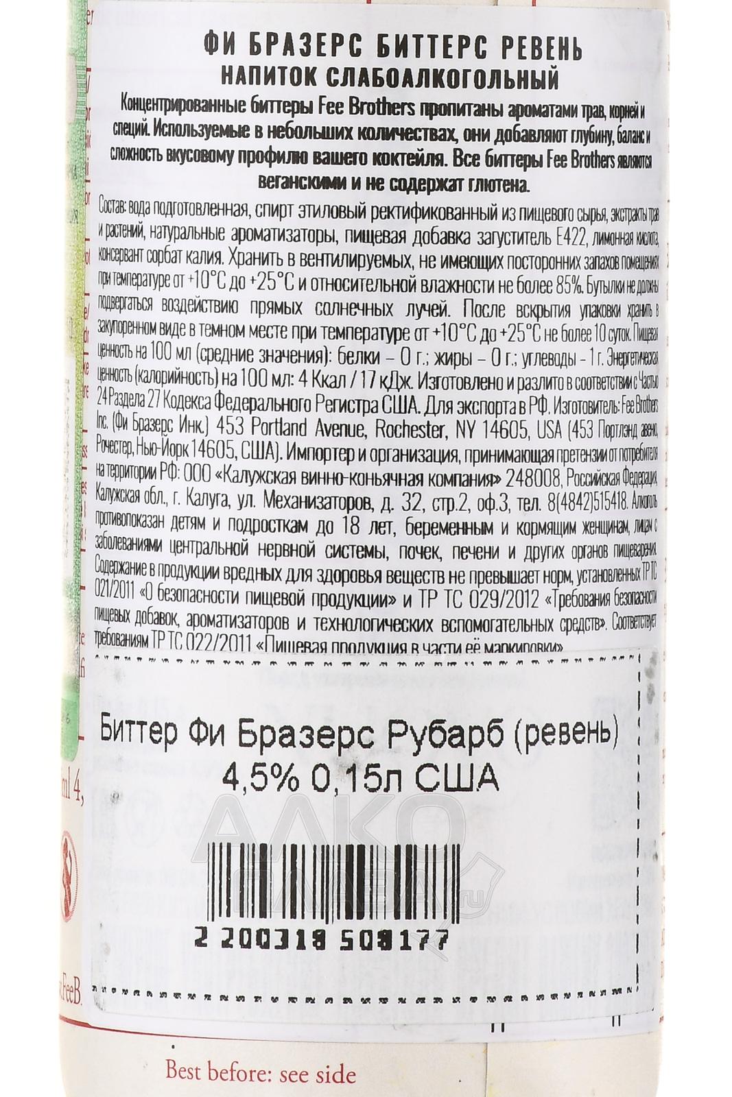 Биттер Fee Brothers Rhubarb 0,15 л — это напиток, изготовленный в традициях XIX века. Он отличается характерной ревеневой кислинкой и тонкой травянистой горчинкой. Производится небольшими партиями с использованием натурального растительного сырья и классических специй. Фи Бразерс — американская компания с более чем 150-летним опытом создания уникальных миксологических вкусов. Благодаря оригинальной рецептуре биттер получил признание среди профессиональных барменов и часто рекомендуется для приготовления десертных коктейлей на основе бурбона.