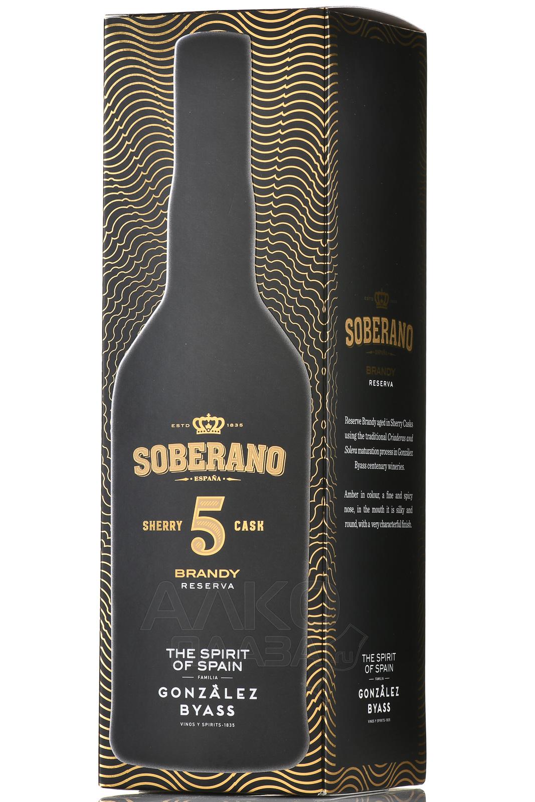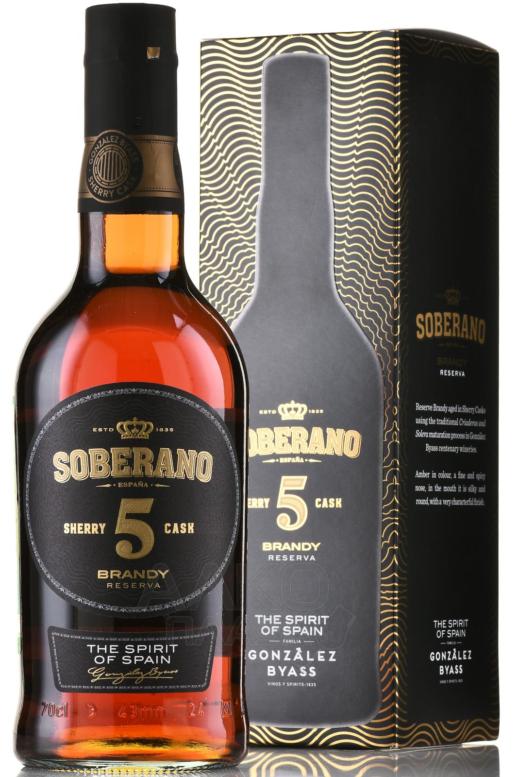 Бренди ди херес Soberano Reserva 5 лет 0,7 л — испанский напиток из региона Херес, который выпускает известный производитель Gonzalez Byass. Применяется традиционная технология «Criaderas y Solera». Напиток проходит выдержку минимум пять лет в американских дубовых бочках из-под хереса. Эта особенность придает ему насыщенный характер с выраженной дубовой ноткой. Благодаря высокому качеству, хересный бренди регулярно завоёвывает медали на престижных международных конкурсах и входит в рейтинги лучших испанских спиртных напитков.