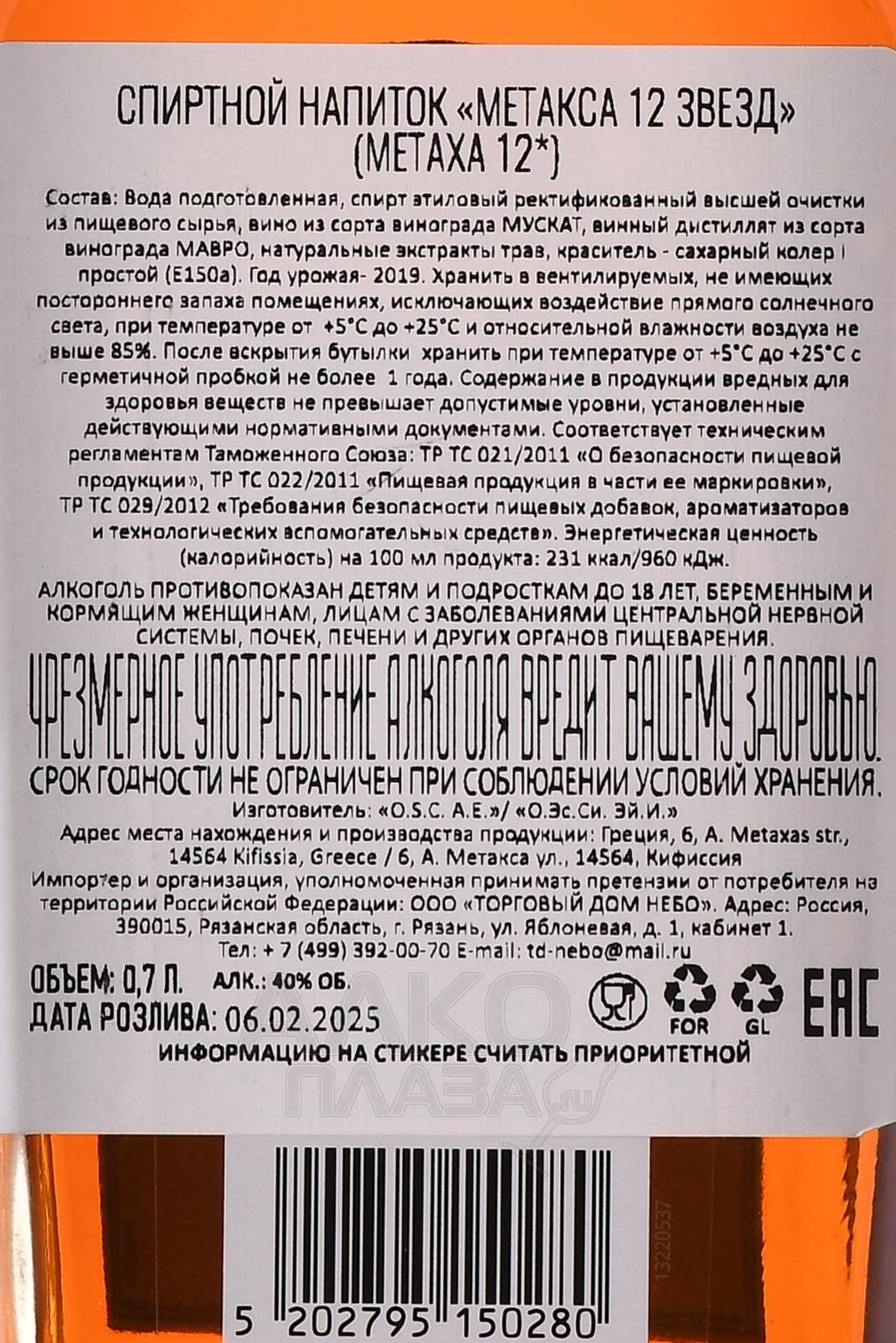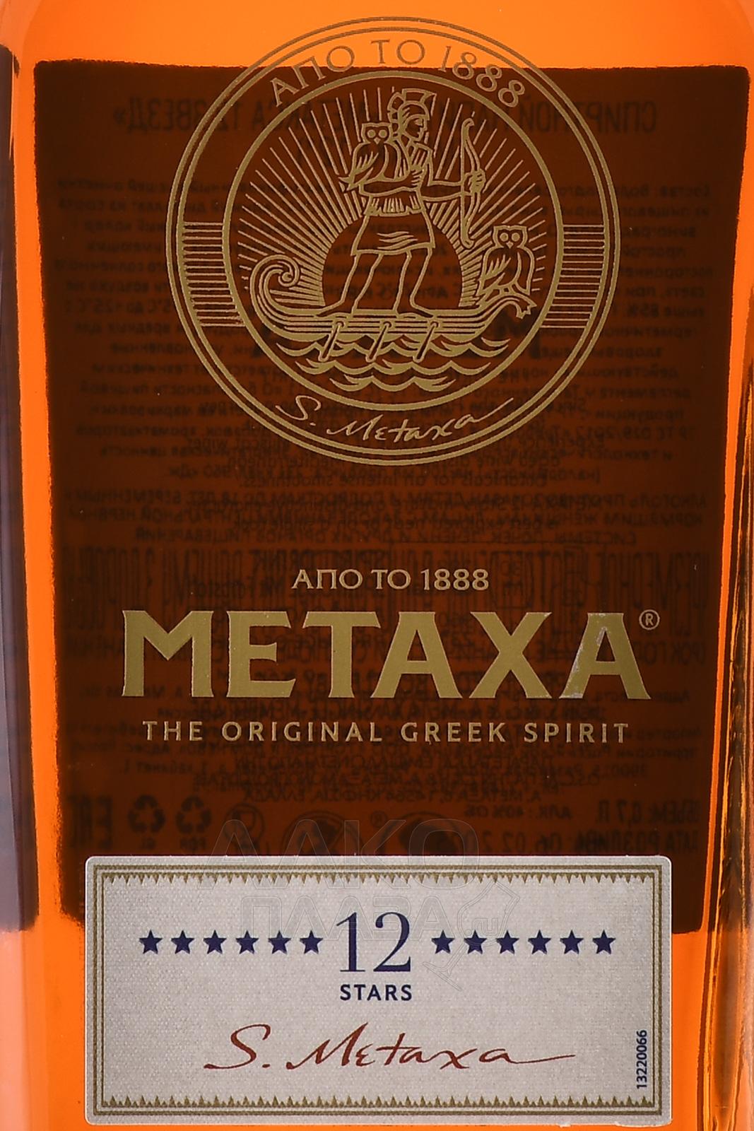 Бренди Метакса 12 звезд 0.7 л был создан из отборных виноматериалов, произведенных на базе сортов винограда Саватьяно, Султанина и Черный Коринф. Напиток выдерживался в бочках из французского лимузенского дуба, что придало ему особенную бархатистость и сложность. Уникальная технология производства заключалась в добавлении средиземноморских трав и розовых лепестков, благодаря чему напиток получил яркую индивидуальность и насыщенность аромата.