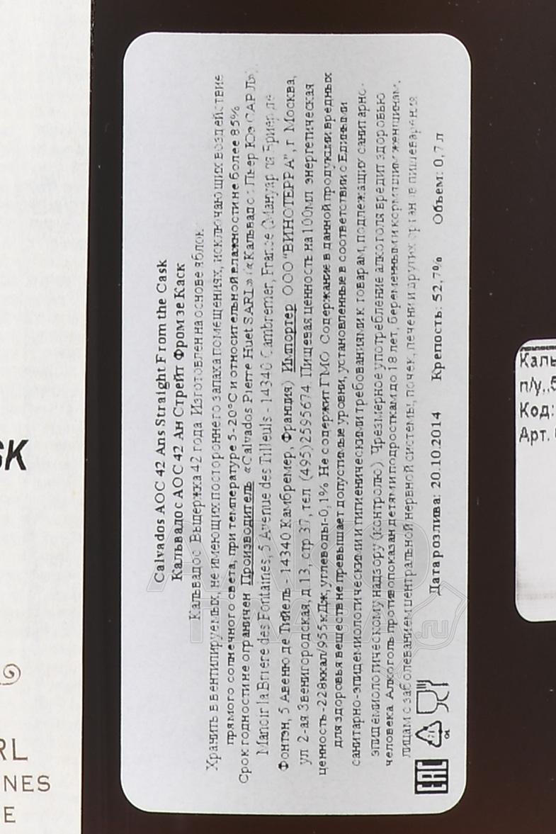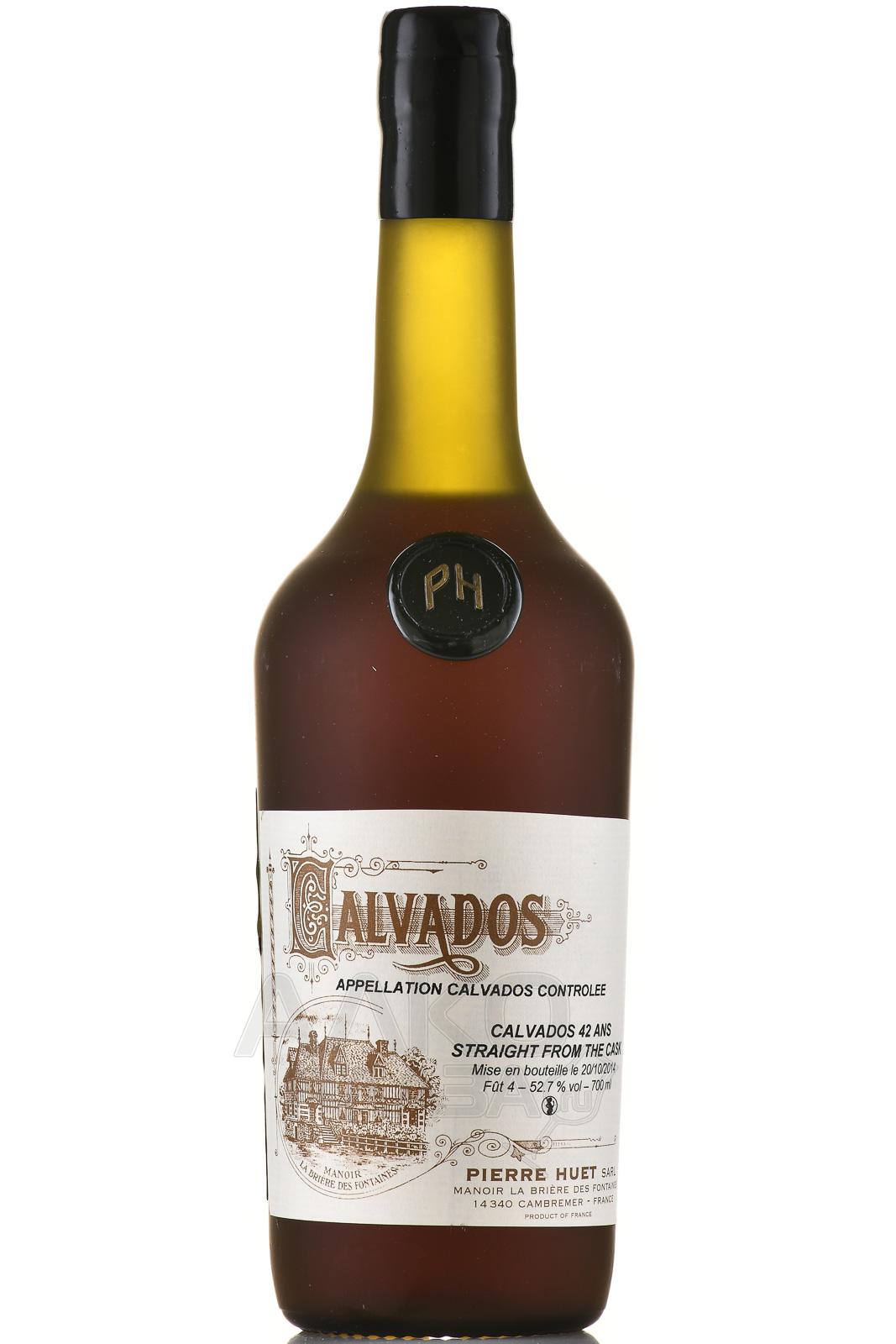 Кальвадос Pierre Huet Calvados 42 Ans Straight from The Cask 0.7 л в д/у — редкий дижестив исключительного качества, созданный в Нормандии. Дистилляты были получены из урожая яблок 1972 году методом непрерывной перегонки. Для подогрева медного аламбика использовалась щепа старых яблонь, что придало спиртам мягкие фруктовые тона. Первая перегонка дала полуфабрикат крепостью 30-35%, вторая — сформировала «сердце» напитка крепостью 70%. Затем кальвадос созревал более сорока лет в дубовых бочках, за счет чего приобрел сложную ароматику и благородную структуру. Розлив осуществлялся без фильтрации, с сохранением естественной бочковой крепости 52,7%. Каждая бутылка имеет номер и сургучную печать с инициалами «PH». Всего произведено чуть более 300 экземпляров, что делает этот кальвадос коллекционным. Потенциал хранения — несколько десятилетий.