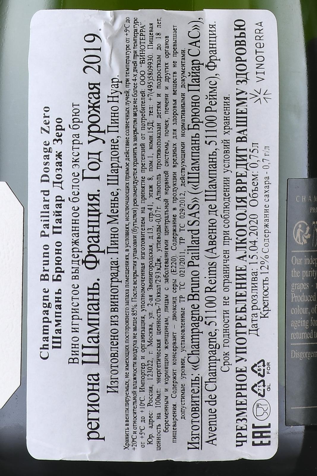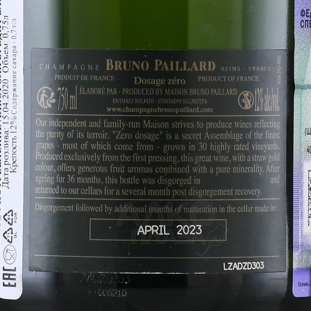 Champagne Bruno Paillard Dosage Zero - шампанское Брюно Пайар Дозаж Зеро 0.75 л белое экстра брют в п/у