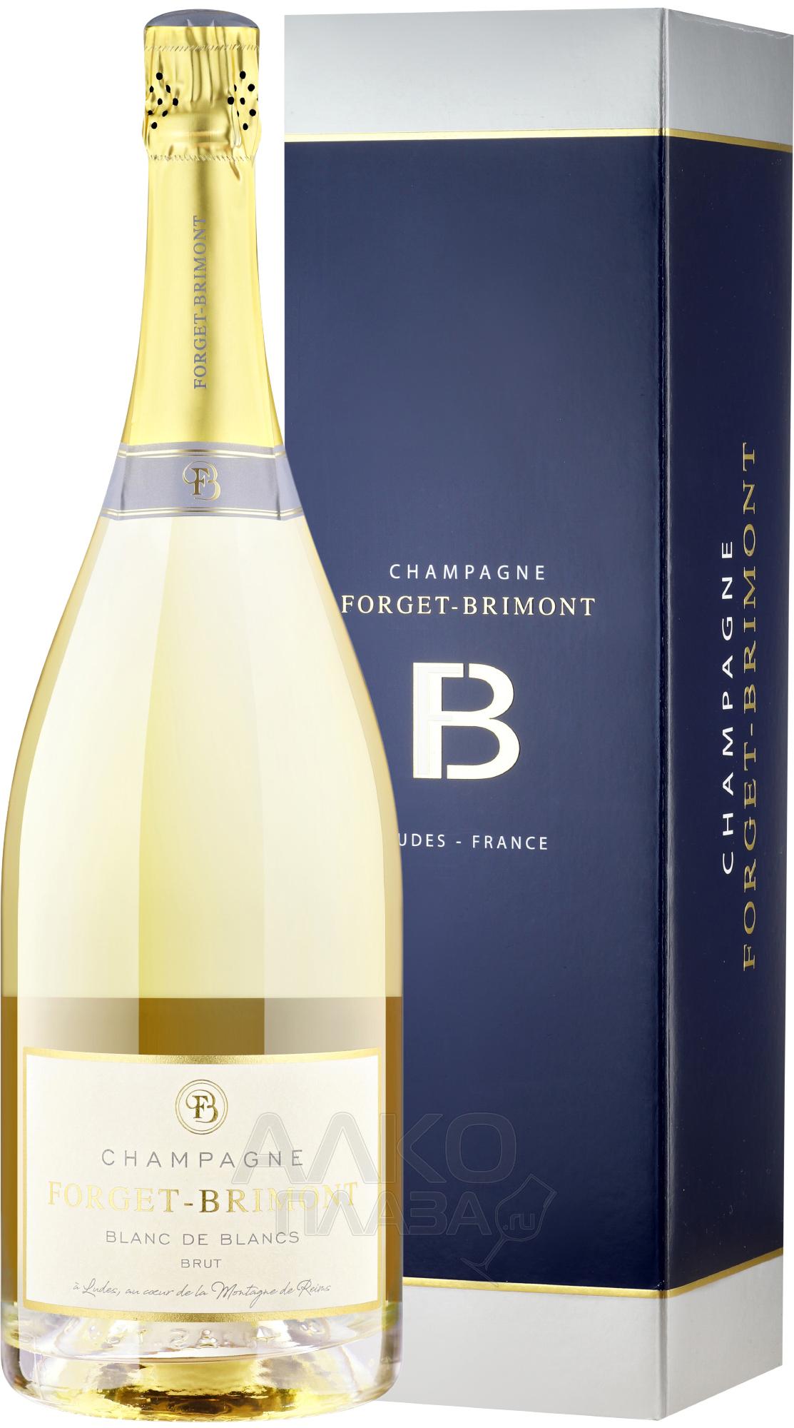Шампанское белое Champagne Forget-Brimont Brut Blanc de Blancs 1,5 л в п/у — релиз в сувенирном оформлении от хозяйства в Монтань-де-Реймс. Урожай собирают вручную с 20 га собственных участков и 5 га контрактных виноградников в деревнях Гран Крю — Верзене, Майи-Шампань, Верзи и Премьер Крю — Шиньи-ле-Роз, Сермиер, Вийе-Аллеран и других. Мергели и глинистые известняки обладают высокими дренажными свойствами и дают ягоды с яркой фруктовой ароматикой и минеральной выразительностью. Полученное первым отжимом кюве отправляют на алкогольную ферментацию при 17 — в стальных резервуарах. Далее следует полгода выдержки на осадке, включая малолактику. Затем проводится ассамбляж и вторичное брожение, которое завершается выдержкой на дрожжах на протяжении как минимум 2,5 года. Эксперты рейтинговых агентств Wine Enthusiast и Falstaff дали этому вину по 91 баллу.