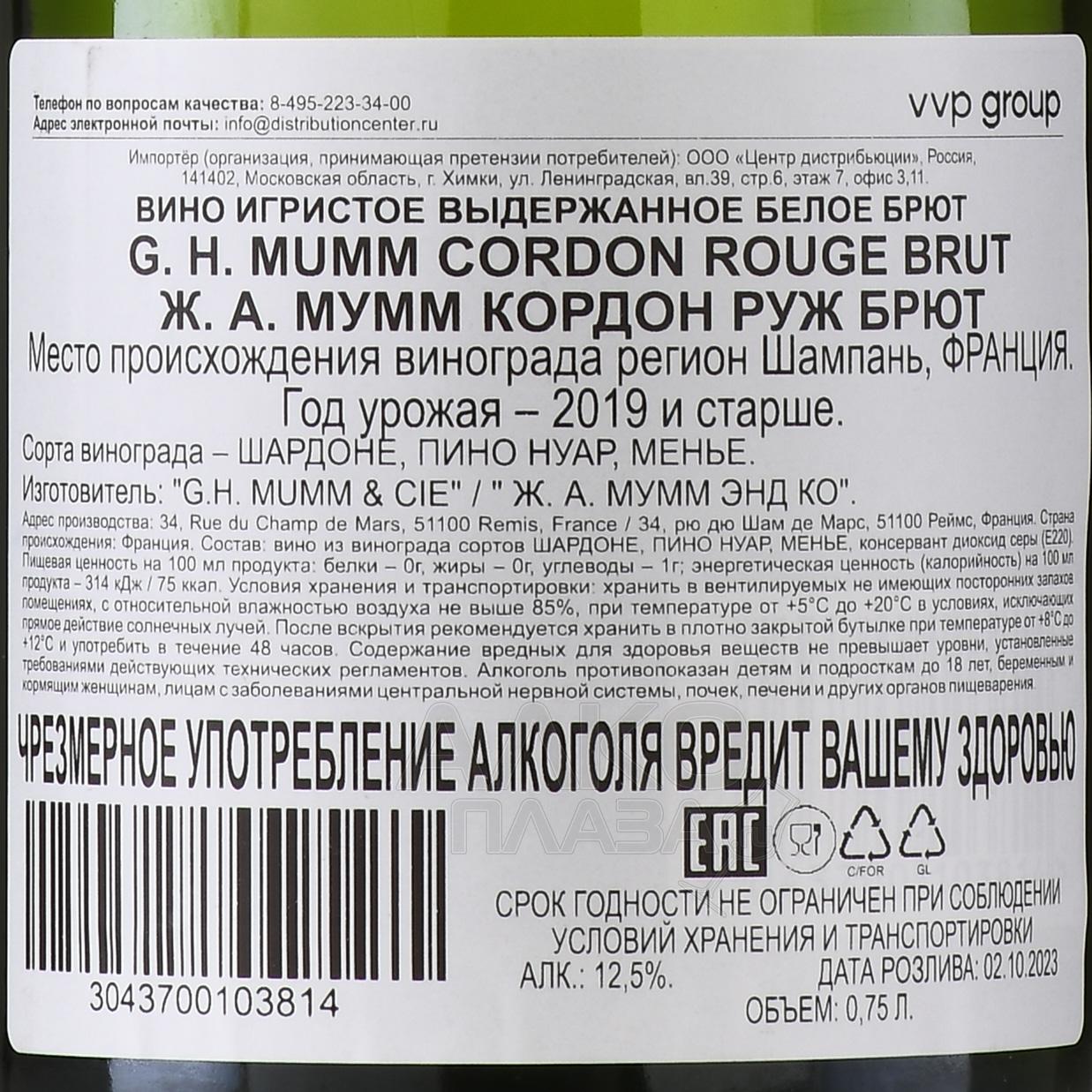 Шампанское белое брют Champagne G.H. Mumm Cordon Rouge Brut 0,75 л создается в регионе Шампань, где виноградники расположены на известняковых и меловых почвах. Такой терруар обеспечивает лозам оптимальный баланс влаги и минералов. Культура виноградарства здесь уходит корнями в античность, а само хозяйство основано в середине XIX века. Для винификации используют три классических сорта, собранных с участков, расположенных в Монтань-де-Реймс, Кот-де-Блан и Валле-де-ла-Марн. Урожаи последних десятилетий отличались стабильным климатом: прохладное лето, достаточное количество осадков и солнечные дни в период созревания ягод позволяли получить виноматериалы высокого качества. После вторичной ферментации бленд выдерживался в погребах не менее 30 месяцев, что значительно превосходит минимальные требования региона. Это придало напитку глубину и структурность. Знаковая красная лента на бутылке символизирует Орден Почетного легиона и представляет собой узнаваемый элемент бренда.