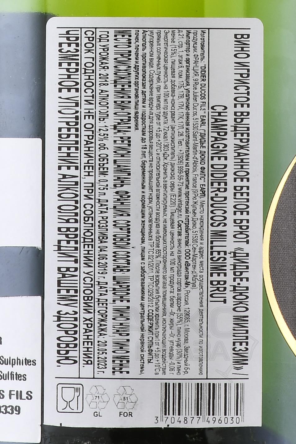 Шампанское белое брют Didier-Ducos Millesime 0,75 л создано в Монтань-де-Реймс, где семья Дюко выращивает виноградные лозы популярных бургундских сортов на глинисто-меловых почвах. Эти земли отличаются хорошим дренажем и позволяют ягодам накапливать гармоничный баланс сахаров и кислотности. Урожай собирают только в удачные годы, когда климатические условия дают плодам высокую концентрацию ароматических веществ. В прохладный сезон формируется свежая кислотность, а теплое лето придает полноту вкуса. Напиток выдерживается на осадке в бутылках не менее 36 месяцев, что придает ему сложность и кремовую текстуру.