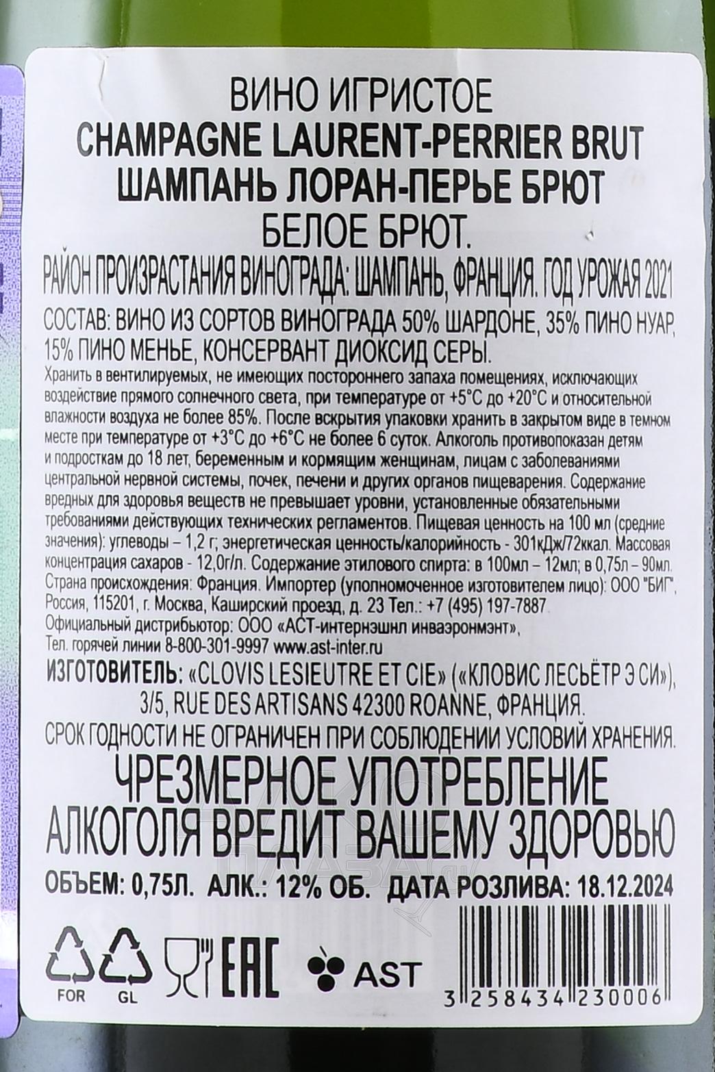 Laurent-Perrier La Cuvee Brut - шампанское Лоран-Перье Брют Ла Кюве 0.75 л белое брют в п/у (кошерное)