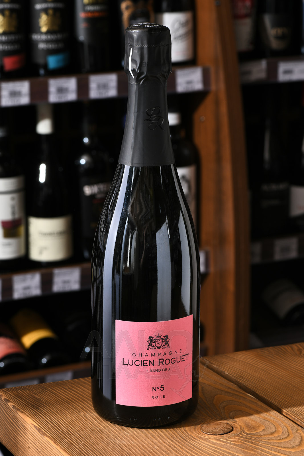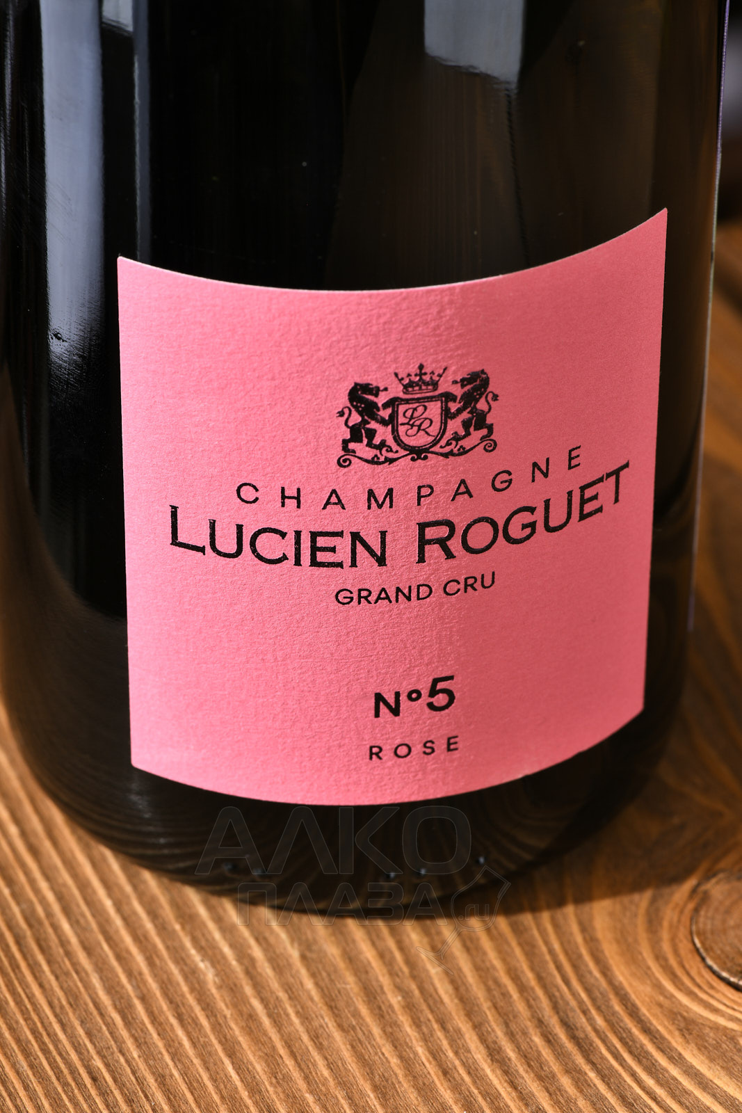 Розовое шампанское Lucien Roguet №5 Rose Grand Cru 0.75 л — выдержанный брют розе класса премиум, созданный из ассамбляжа Шардоне, Пино Нуар и Пино Менье, собранных ручным способом в определенный год и выращенных в легендарном регионе Шампань на плантациях Гран Крю, богатых известняковыми почвами. Мастера компании используют только кюве — сок первого отжима. Брожение осуществляется в течение менее месяца в резервуарах из стали при термоконтроле. Повторная ферментация и выдержка проходят на осадке непосредственно в бутылках. Созревает напиток чуть больше года. После удаления осадка добавляют дозажный ликер — 8 г/л, по завершении процесса шампанское отдыхает в погребах винодельни на протяжении месяца.