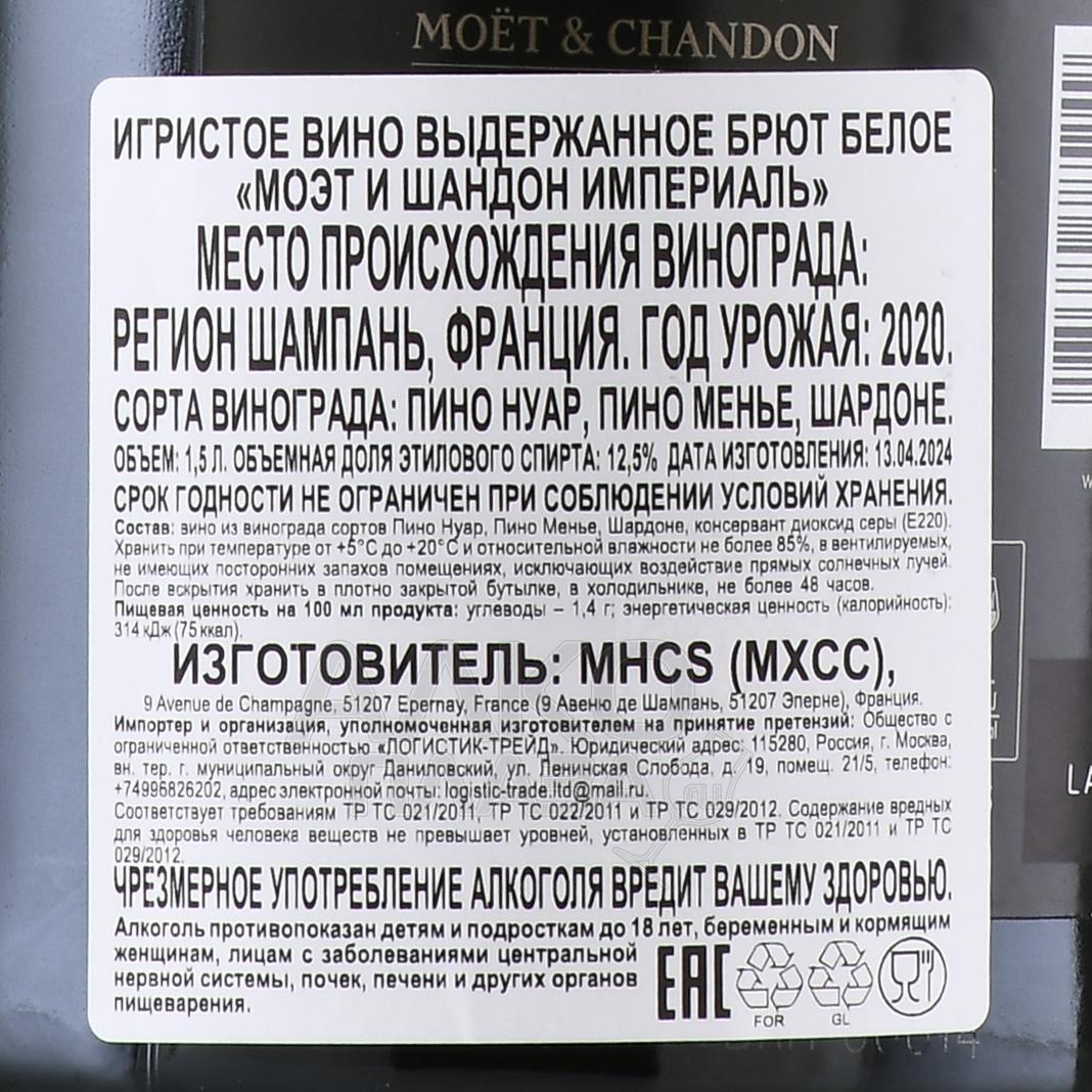 Moet & Chandon Brut Imperial - шампанское Моет и Шандон Брют Империаль 1.5 л белое брют в п/у