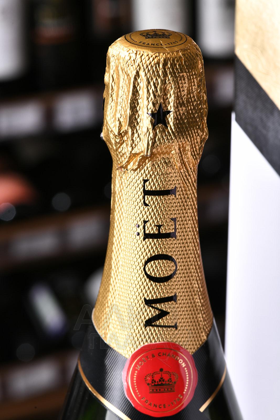 Moet & Chandon Brut Imperial 0,75 л в п/у – культовое шампанское Франции, которое идеально подойдет на роль презентабельного сувенира. Белый брют создан более чем из сотни вин, часть которых прошла выдержку в дубовых бочках. Основу напитка составляют три сорта винограда, наиболее распространенные в провинции Шампань. Напиток выдерживается на осадке в течение двух лет, а затем дозревает три месяца в бутылке.