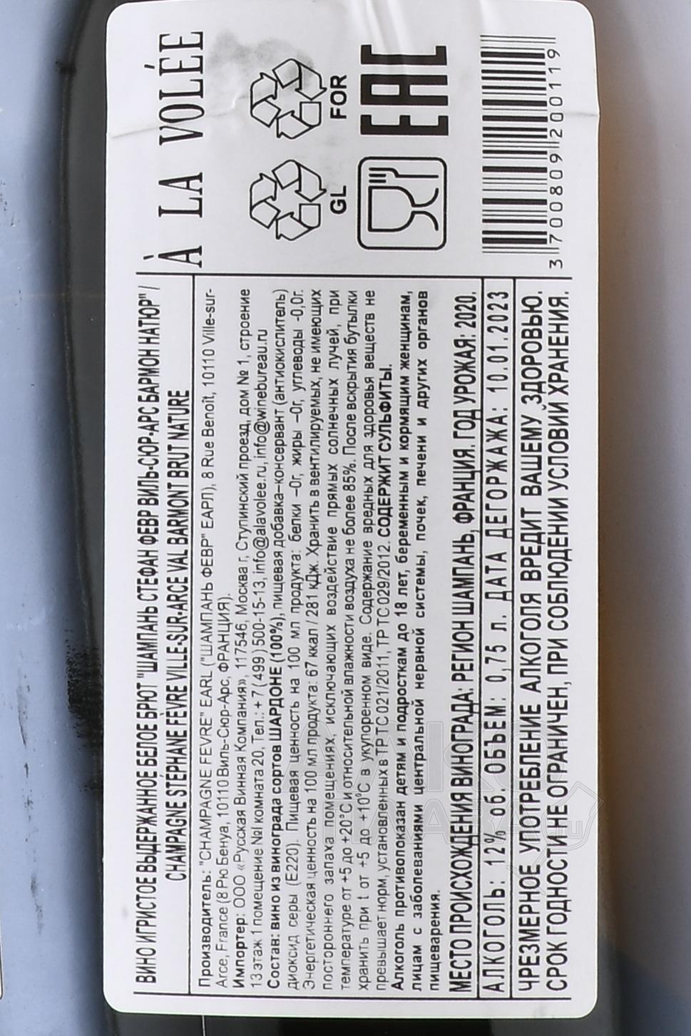 Шампанское Stephane Fevre Ville-sur-Arce Barmont Nature 0,75 л — редкое и утонченное, отражающее стиль малых хозяйств Шампани, где каждое решение винодела чувствуется в бокале. Виноград собран с участка Валь-Бармон в южной части Кот-де-Бар, где почвы известково-глинистые, богатые минералами и идеально подходят для выражения терруара. Ферментация проходила естественным образом с яблочно-молочным брожением, без фильтрации. Базовое вино выдерживалось 11 месяцев в дубовых бочках на осадке. После завершения вторичного брожения в бутылке кюве 19 месяцев дозревало на тонком осадке. Это шампанское без дозажа — чистый, натуральный брют, выпущенный ограниченным тиражом всего 700 бутылок. Его часто отмечают за прозрачность вкуса и элегантную глубину, свойственные стилю винодела Стефану Февру.