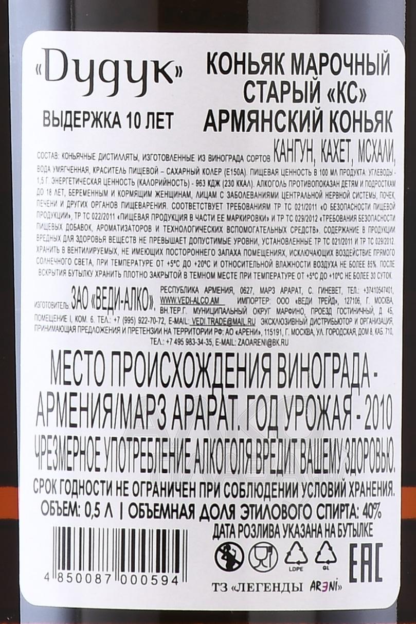 Duduk 10 years - армянский коньяк Дудук 10 лет 0.5 л