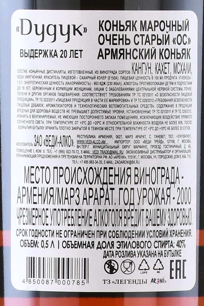 Duduk 20 years - армянский коньяк Дудук 20 лет 0.5 л
