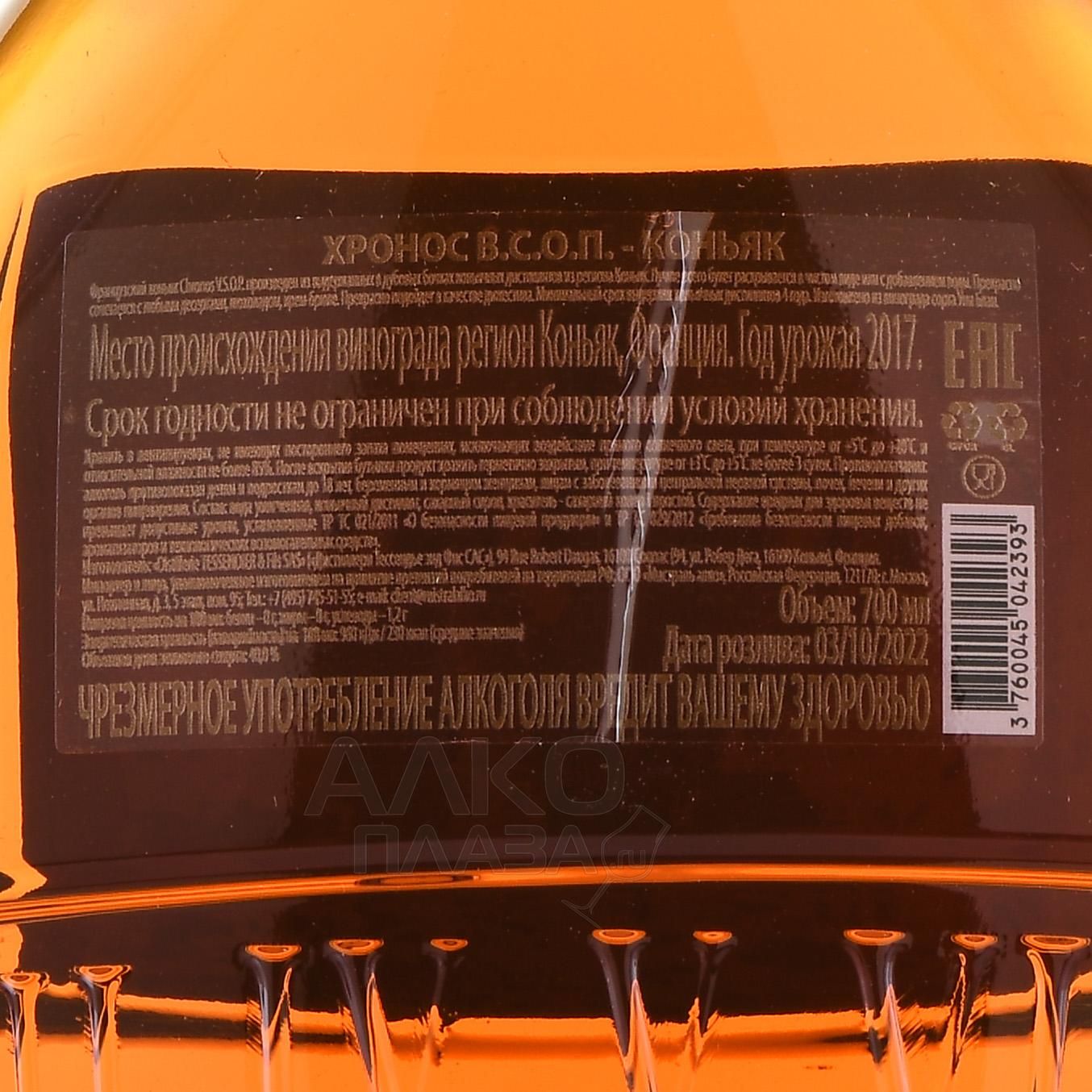 Коньяк Chronos VSOP 0,7 л в п/у производится винограда, который выращивают в тёплом климате с продолжительным летом и достаточным количеством солнечных дней. Такая погода создаёт подходящие условия для стабильного созревания винограда с умеренной кислотностью и нейтральным ароматическим профилем, оптимальным для перегонки. Изготовление ведётся по классической коньячной технологии: сначала получают базовое вино, затем проводят двойную дистилляцию в медных перегонных аппаратах. Созревают спирты в дубовых бочках, а разливаются при крепости 40%.