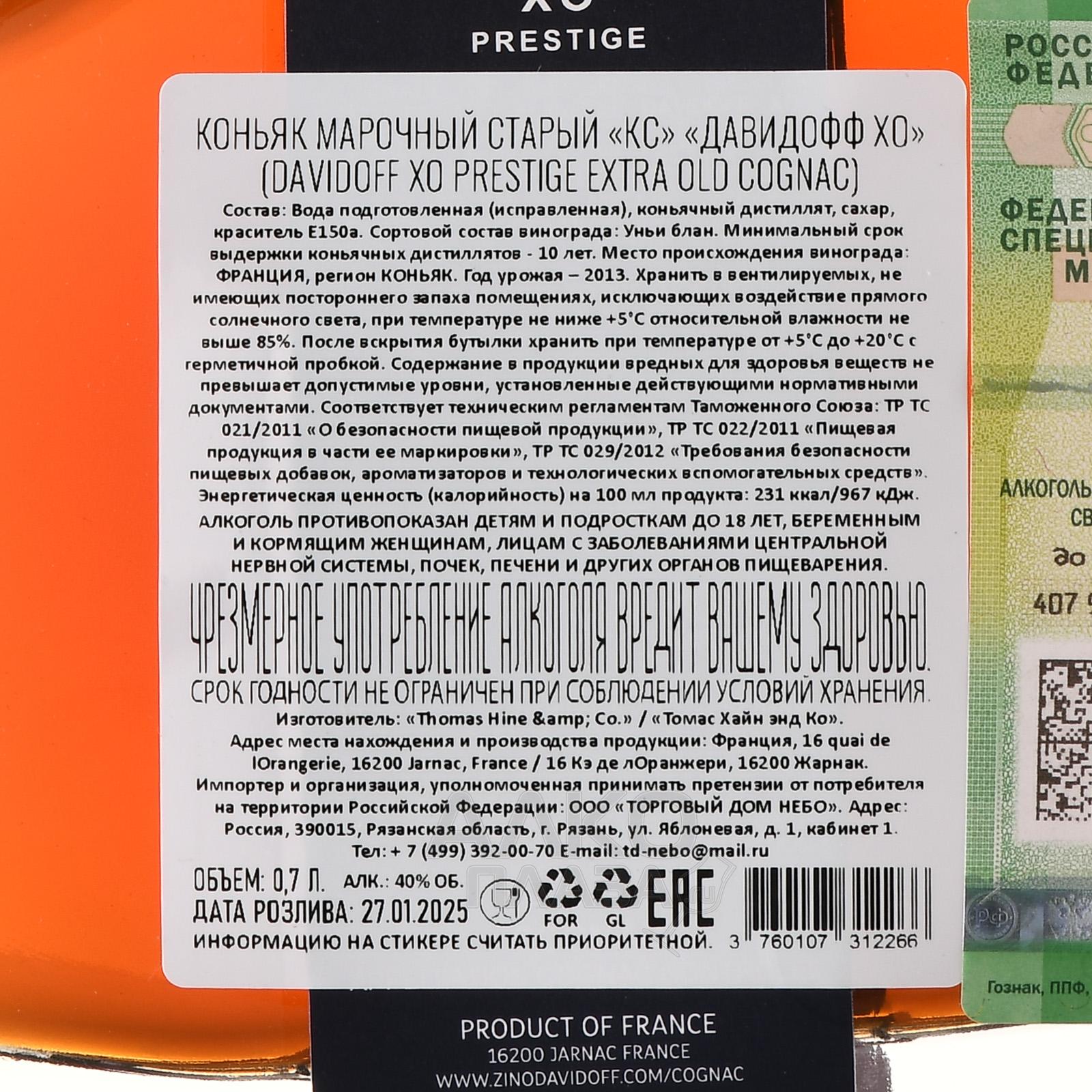 Davidoff XO - коньяк Давидофф ХО 0.7 л