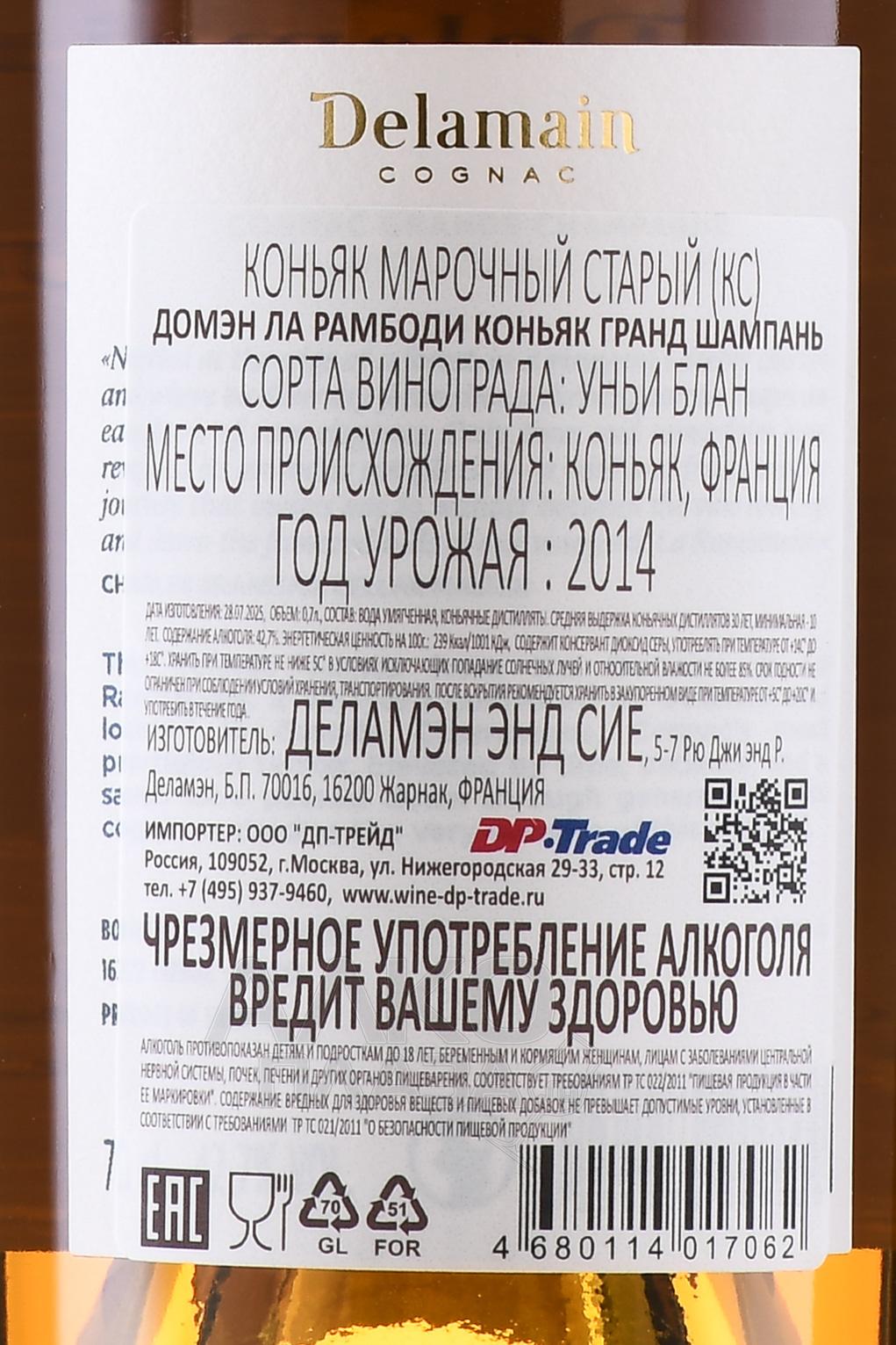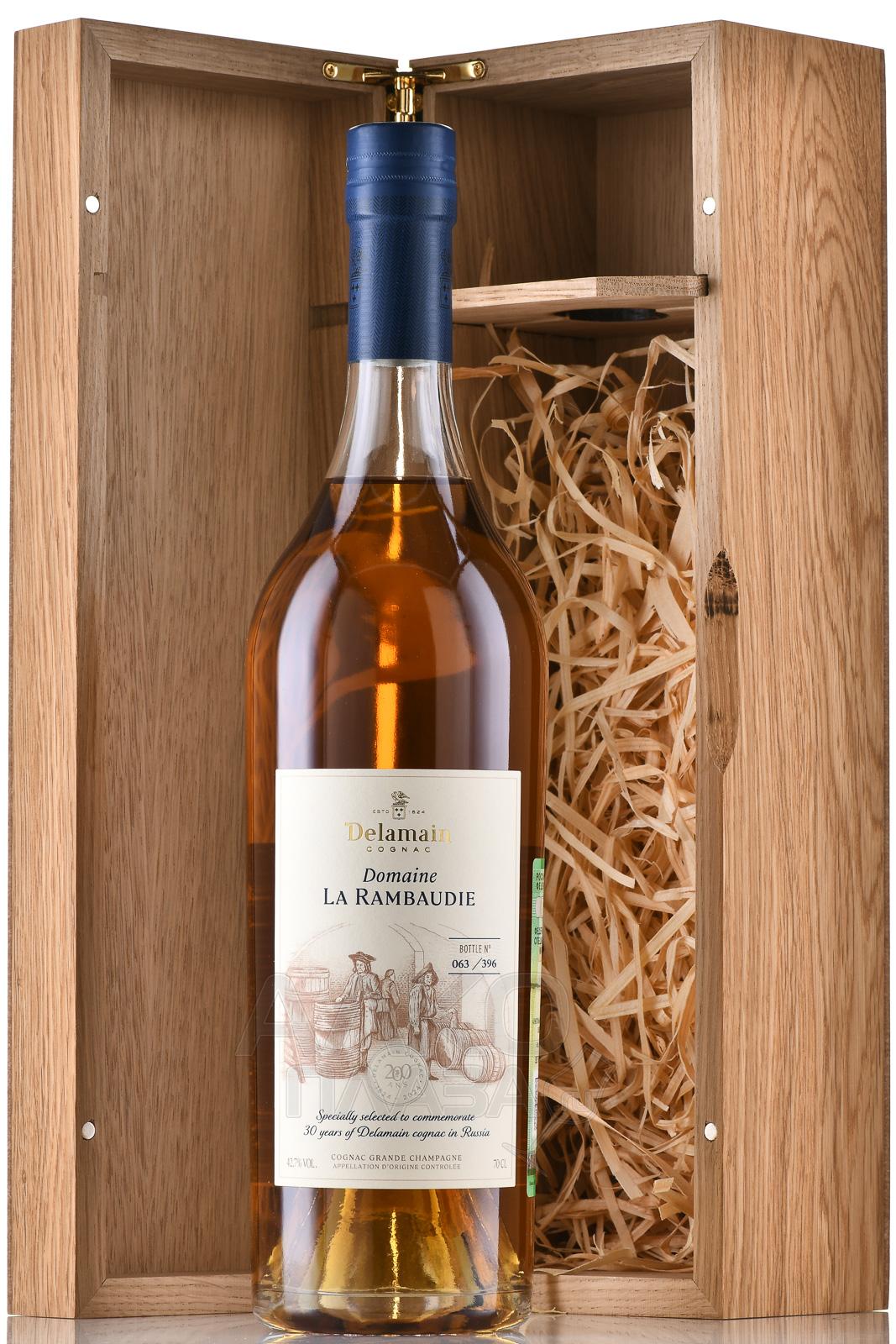 Коньяк Delamain Domaine La Rambaudie 0,75 л в д/у относится к категории релизов категории Single Vineyard и отражает особенности конкретного виноградника, расположенного в крю Grande Champagne. Сырьё выращивается на меловых почвах, обеспечивающих медленное созревание и высокий потенциал развития спиртов. Используется виноград Ugni Blanc, переработанный без добавления серы. Вино для перегонки получают с акцентом на чистоту основы. Дистилляция проводится традиционным способом в медных аламбиках. Выдержка осуществляется исключительно в старых бочках из французского дуба, что позволяет избежать доминирования древесных тонов. Снижение крепости происходит естественным образом в процессе многолетнего созревания. Купажирование не применяется, благодаря чему сохраняется индивидуальный характер участка и происхождения, свойственный стилю дома.