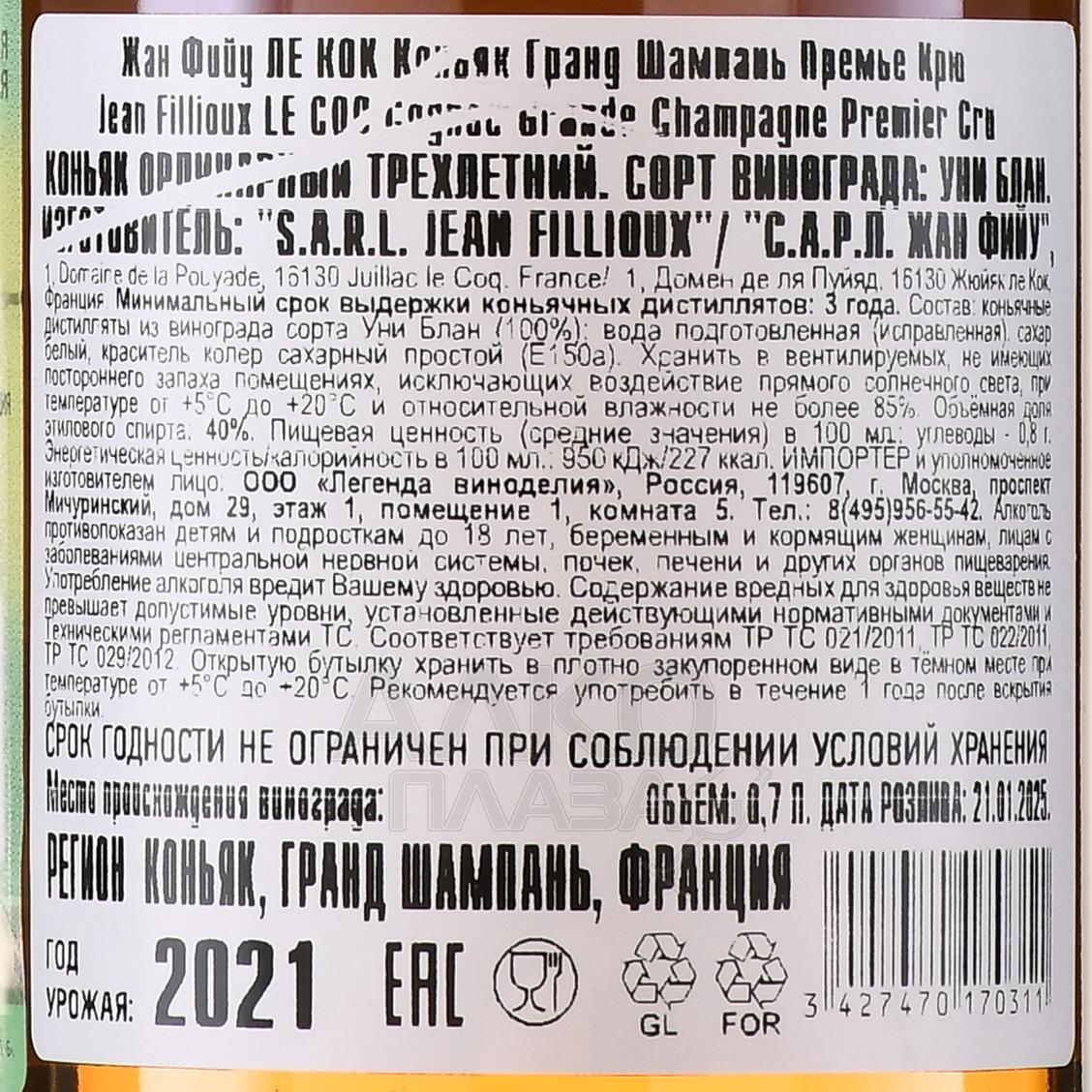 Jean Fillioux Coq - коньяк Жан Фийу Кок 0.7 л