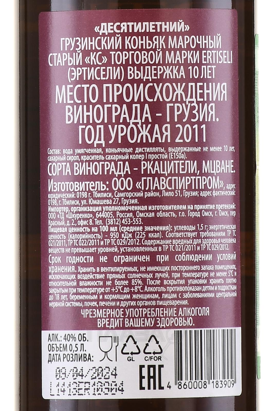 Коньяк Эртисели КС 10 лет 0,5 л — грузинский спиртной напиток премиум-класса с солидной. Он обладает мягким, элегантным характером благодаря долгому созреванию в дубовых бочках. В производстве используются традиционные технологии, обеспечивающие гармоничное сочетание фруктовых и древесных нот. Напиток известен высоким качеством и стабильностью вкуса, что сделало его популярным среди поклонников марочного коньяка. Эртисели КС признан специалистами и ценителями за выдержанность и сбалансированность букета.
