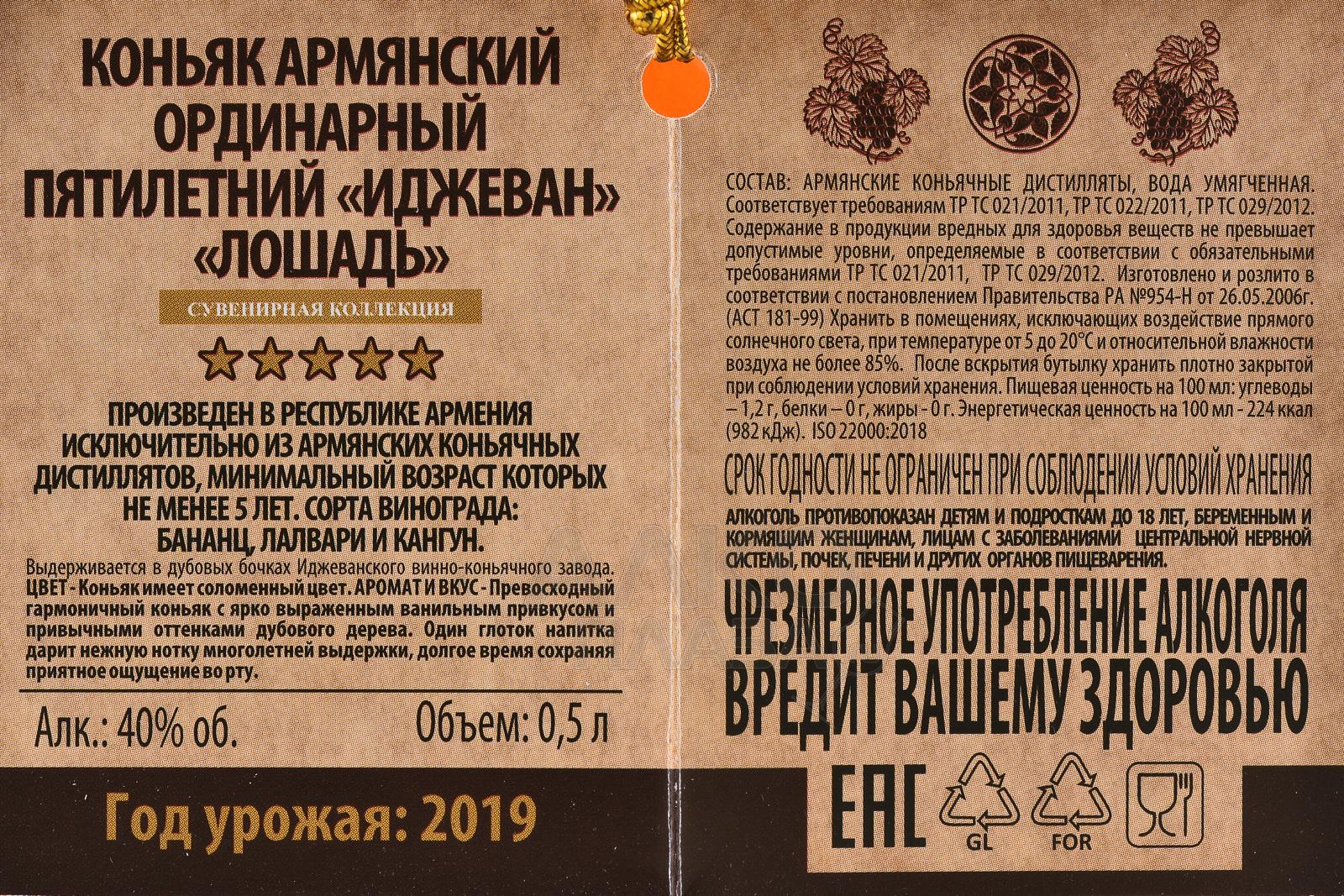 Коньяк Иджеван 5 лет Лошадь 0,5 л в п/у — напиток, который соединяет армянскую традицию винокурения с художественным оформлением. Бутылка в форме лошади делает его не только коллекционным, но и символичным — животное в культуре Армении ассоциируется с силой и свободой. Напиток создан на Иджеванском винно-коньячном заводе, одном из старейших предприятий региона. Для производства используют виноград, выращенный в Тавушском и Араратском регионах, где тёплые солнечные дни и прохладные ночи помогают сохранить в ягодах сахар и кислоту в равновесии. Почвы здесь глинисто-известняковые, с каменистыми включениями, что придаёт плодам плотность и ароматическую выразительность. Коньячные дистилляты перегоняют дважды, а затем выдерживают в дубовых бочках не менее пяти лет.