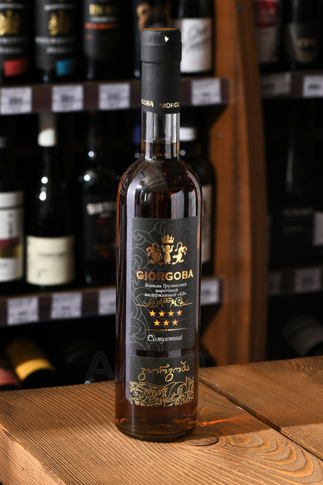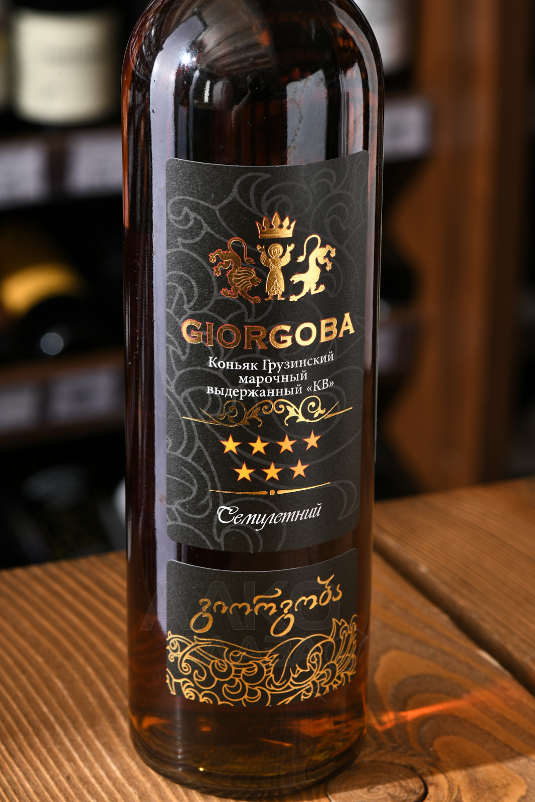 Коньяк КВ Giorgoba 7 лет 0,5 л относится к категории марочных и демонстрирует знаменитый стиль Грузии, сочетающийся с индивидуальным характером алкоголя. Он произведен по всем канонам из автохтонного сорта Ркацители, который культивируется на виноградниках Телавского района. Был преимущественно использован урожай 2014 года. Коньяк включает в себя тщательно отобранные дистилляты, выдерживавшиеся в бочках из кавказского дуба не менее 7 лет.