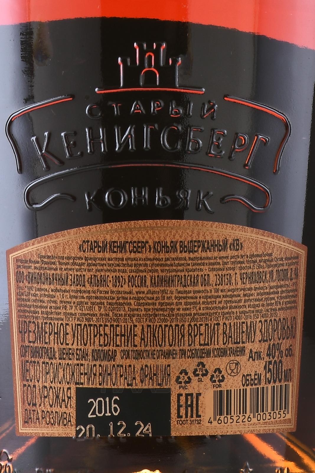 Коньяк КВ Старый Кенигсберг 6 лет 1.5 л + стакан создавался по классическим канонам, с выдержкой не менее шести лет в дубовых бочках, что придавало напитку глубину и гармонию. Он отличился мягкостью и округлым вкусом, который достигался за счёт особой технологии двойной дистилляции и медленного созревания в древесине, насыщавшей дистиллят тонами ванили и сухофруктов. Местность сбора винограда отличалась умеренным морским климатом с тёплым летом и мягкой зимой, а также почвами, богатыми минералами, что обеспечивало ягодам сбалансированное содержание сахара и кислот. Такой терруар создавал условия для формирования богатого вкусового профиля и делал напиток выразительным, с характерной глубиной и продолжительным послевкусием.