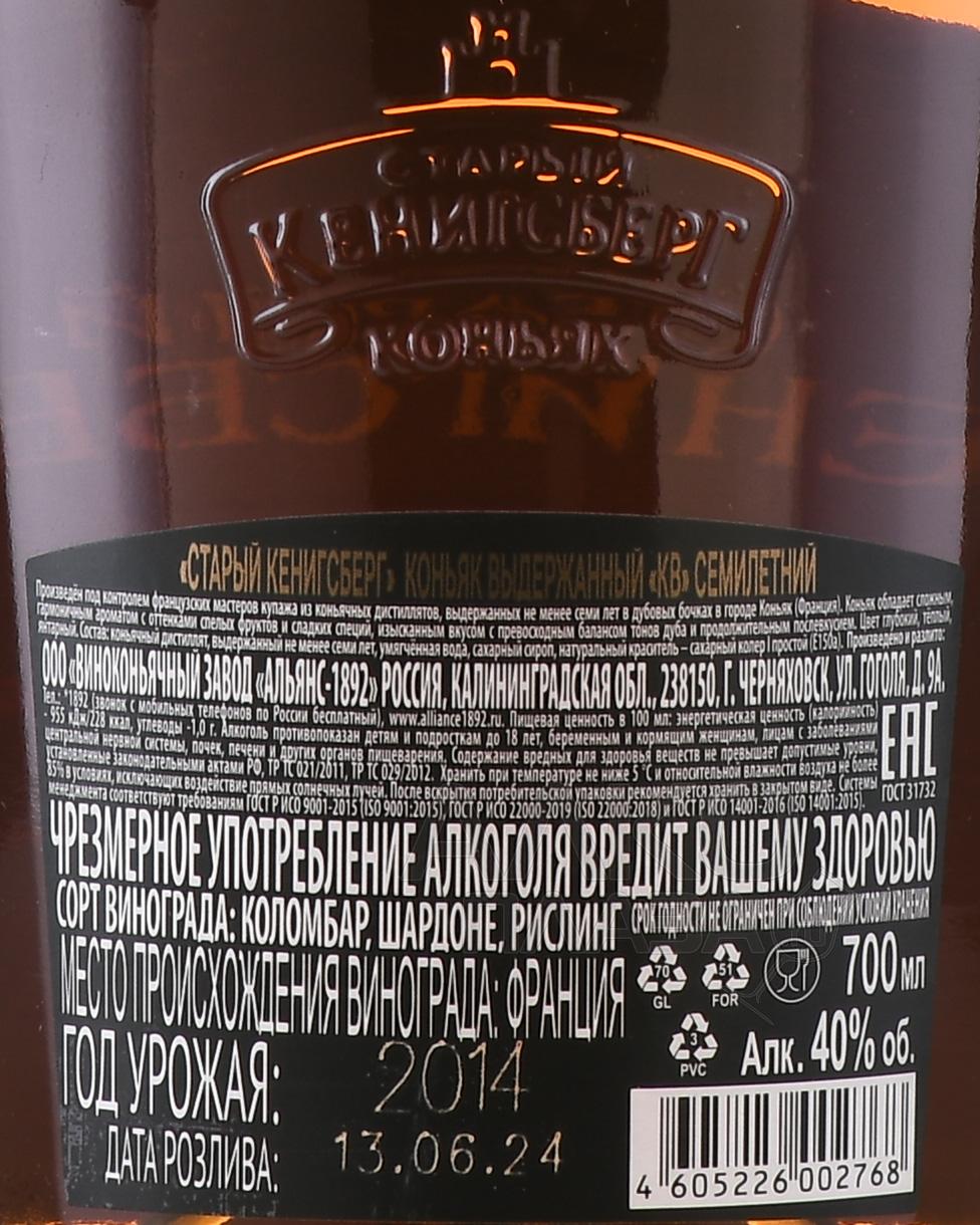 Коньяк КВ Старый Кенигсберг 7 лет 0.7 л в п/у