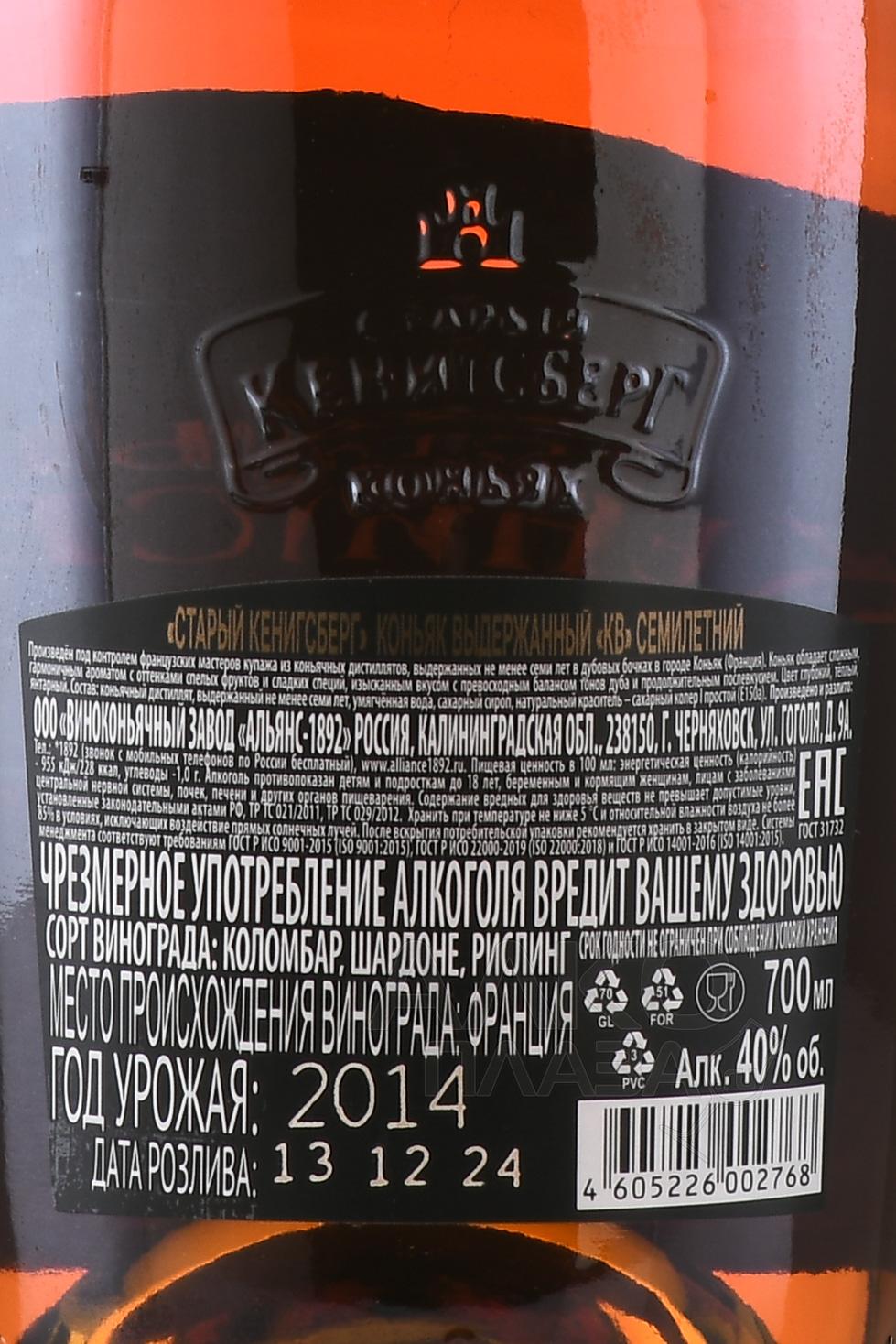 Коньяк КВ Старый Кенигсберг 7 лет 0.7 л + стакан отличается выдержанным характером и благородной гармонией вкуса. Его создавали по классической французской технологии двойной перегонки с последующим созреванием в дубовых бочках не менее семи лет. Терруар сырья происходил из регионов с мягким морским климатом и плодородными известковыми почвами, что придавало ягодам насыщенность и баланс сахара и кислотности. Длительное взаимодействие со старым дубом раскрывало богатую палитру оттенков: от ванильных и пряных до легких шоколадных нюансов, делая напиток выразительным и глубоким. Особый подарок — бокал в комплекте, подчеркивающий культуру дегустации.