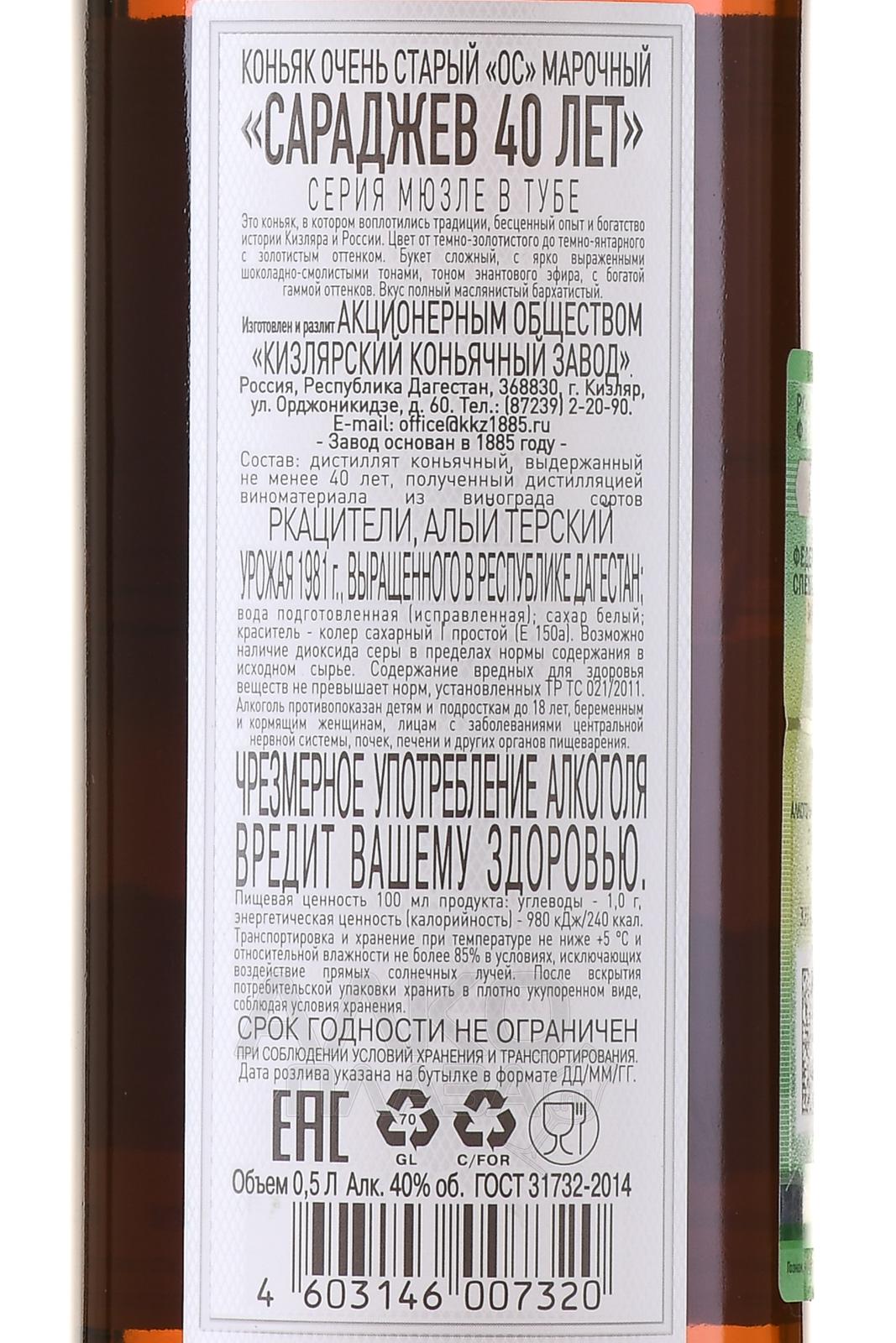 Коньяк ОС Сараджев 40 лет 0.5 л в тубе