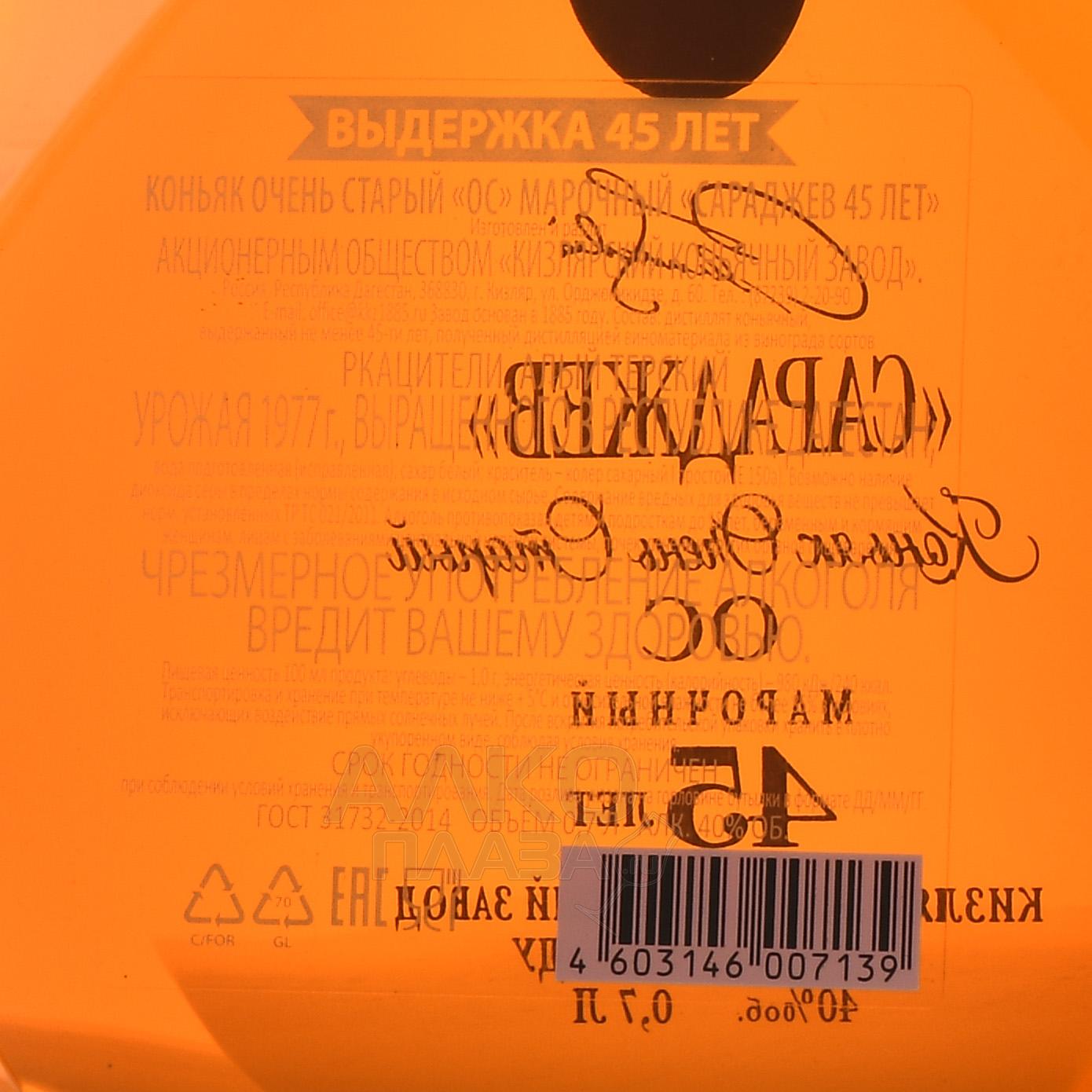 Коньяк ОС Сараджев 45 лет 0.7 л п/у кожа