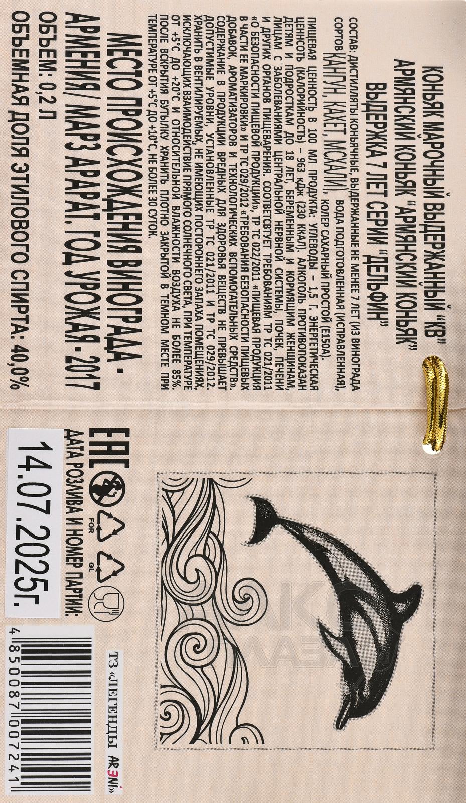 Коньяк Веди Алко КВ Армянский 7 лет 0,2 л в п/у выпускается в оригинальной бутылке в форме дельфина, которая делает напиток не только редким примером мастерства, но и коллекционным украшением. Такой дизайн символизирует чистоту, грацию и благородство, подчеркивая индивидуальность бренда и традиции ручного стеклодувного производства. Напиток создается на винодельне, расположенной в долине Арарат — регионе с древней историей виноделия. Здесь, на вулканических и известняковых почвах, виноградные лозы впитывают тепло солнца и прохладу горного воздуха. Для изготовления спиртов используются автохтонные армянские сорта, ягоды которых превращают в белое сухое вино, а его в свою очередь перегоняют дважды в медных аламбиках. Выдержка длится не менее семи лет в дубовых бочках из кавказского дуба, придающих дистиллятам гармоничную структуру и мягкость.