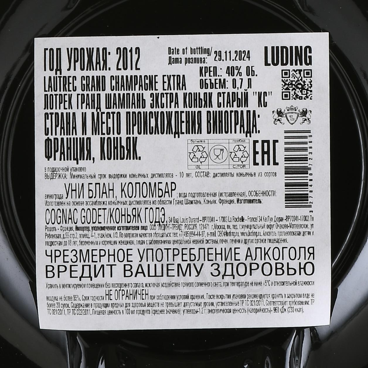 Lautrec Extra - коньяк Лотрек Экстра 0.7 л в п/у