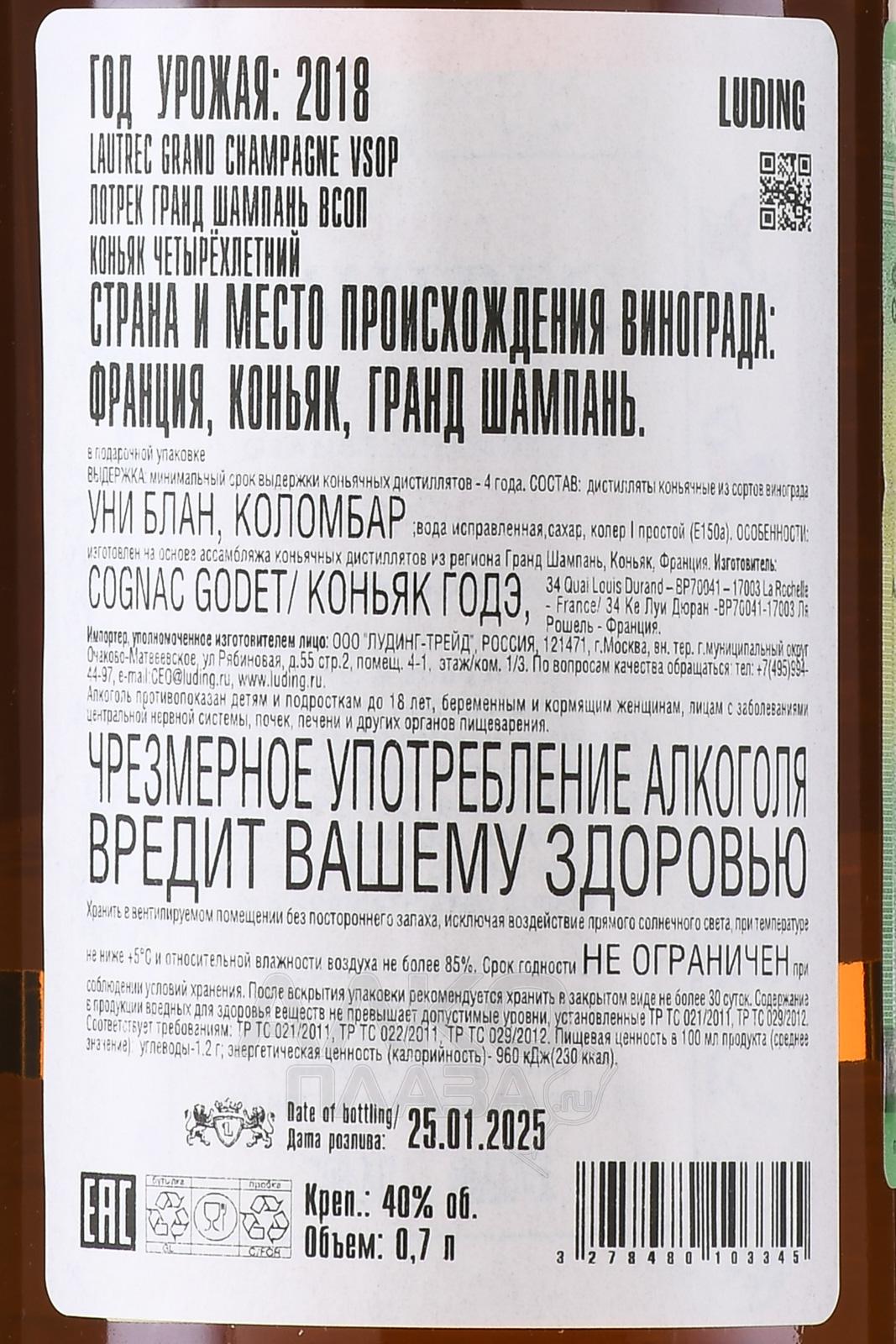Lautrec VSOP - коньяк Лотрек ВСОП 0.7 л в п/у