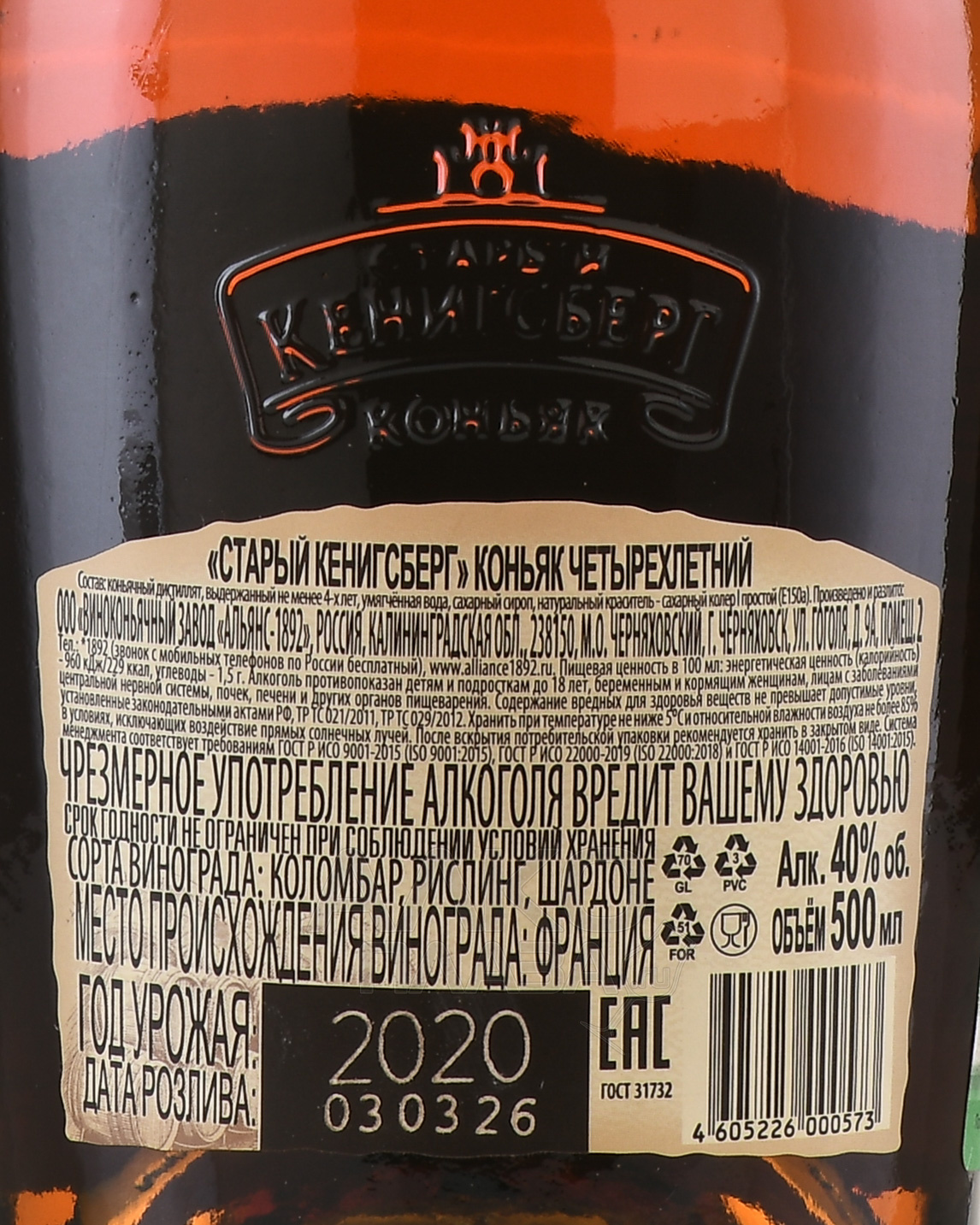Коньяк Старый Кенигсберг 4 года 0.5 л