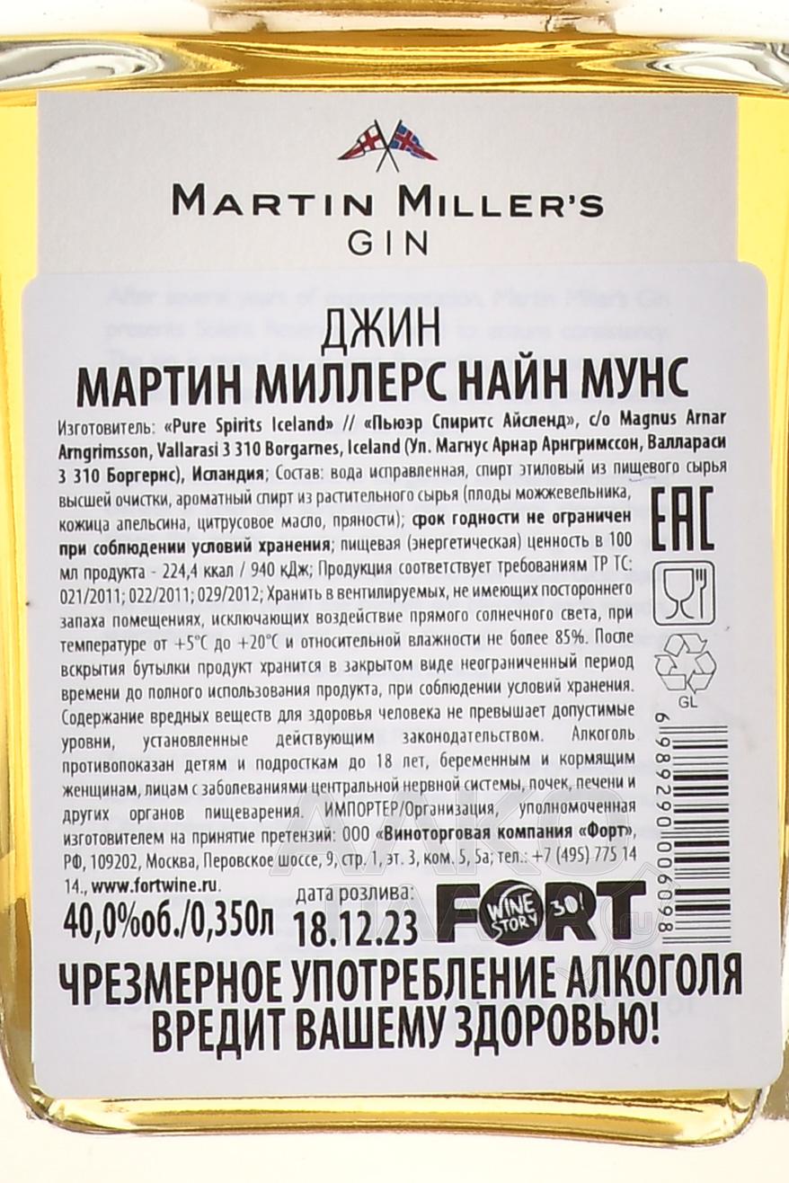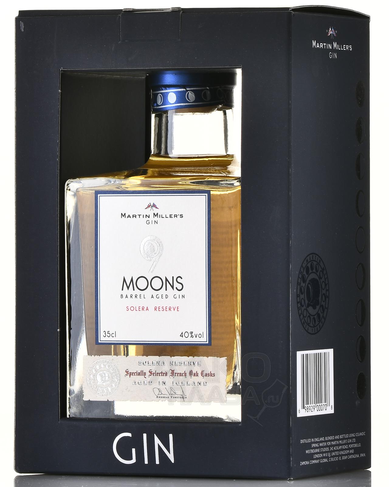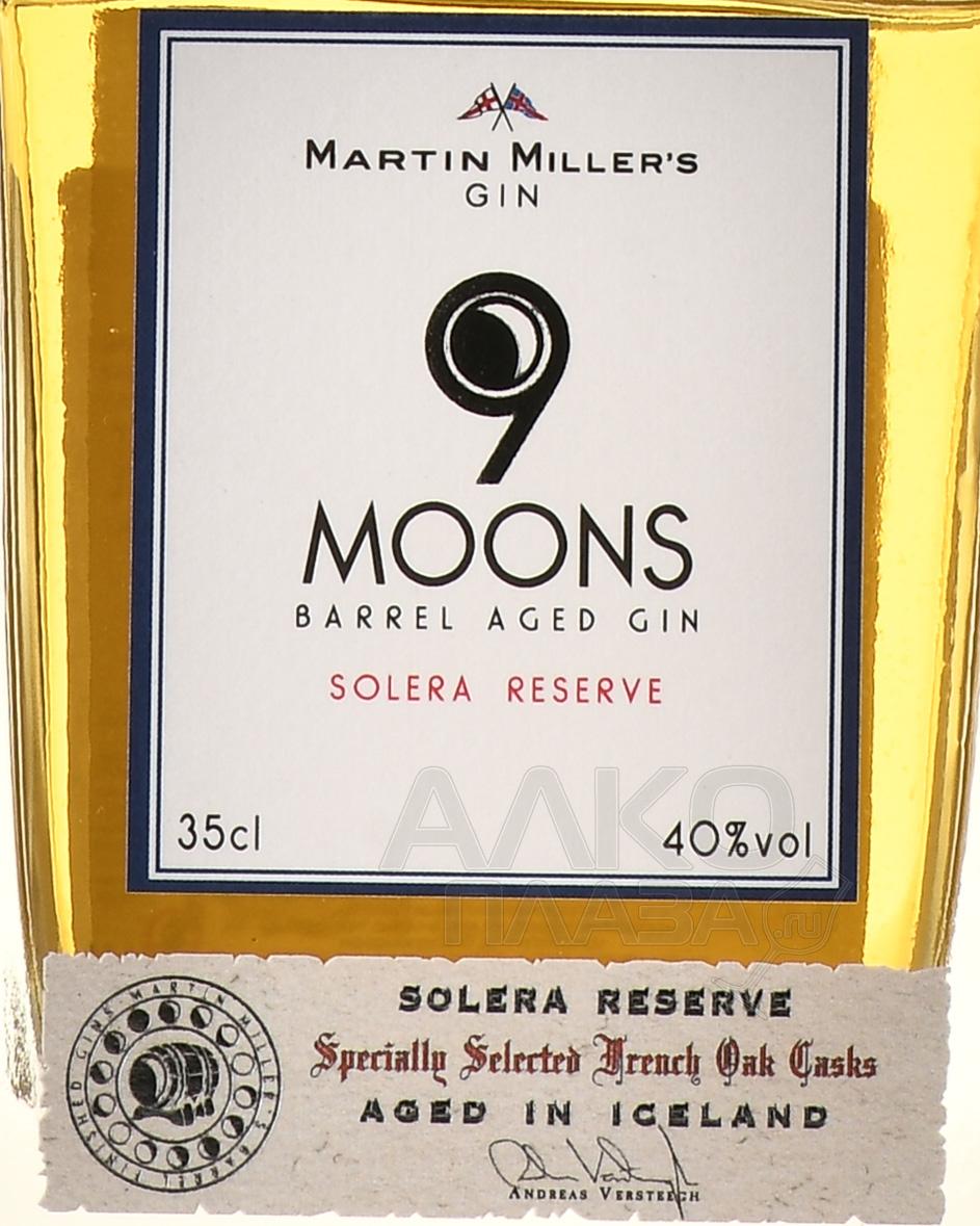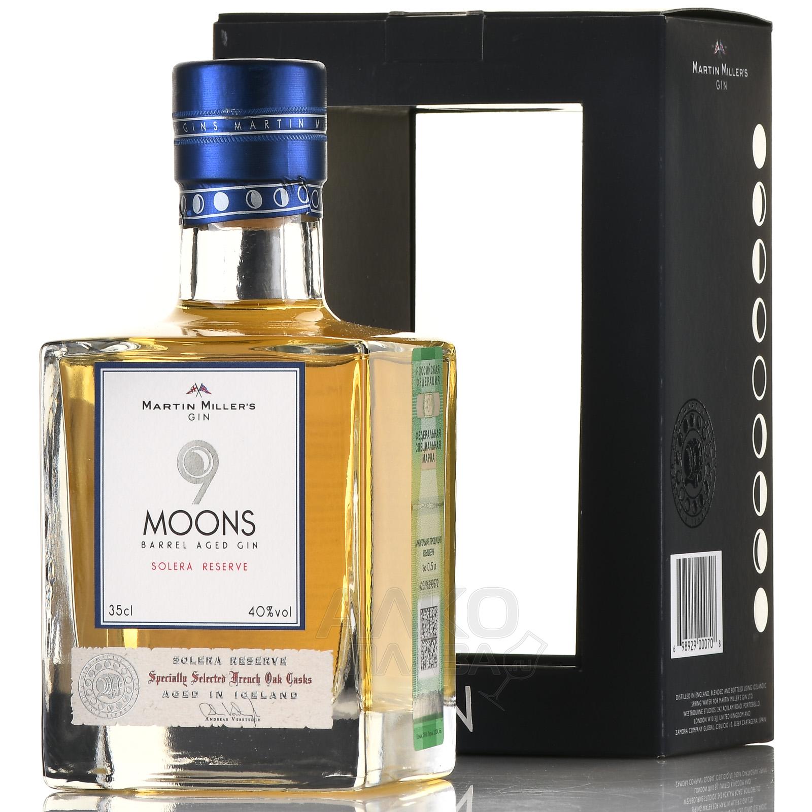 Джин Martin Miller`s Nine Moons — эксклюзивный алкоголь с натуральным составом, в котором присутствуют экологически чистые травы, пряности, коренья, цитрусовые, собранные в лучших регионах. Изготовление проходит посредством дистилляции, а завершенный дегустационный рисунок формирует девятимесячная выдержка в барриках повторного наполнения (некогда они применялись для вызревания бурбона). Этот вид джина выпускается лимитированными партиями. Его можно приобрести в прямоугольных красивых бутылках уменьшенного формата (350 мл), укомплектованных сувенирными картонными коробками благородного синего цвета.
