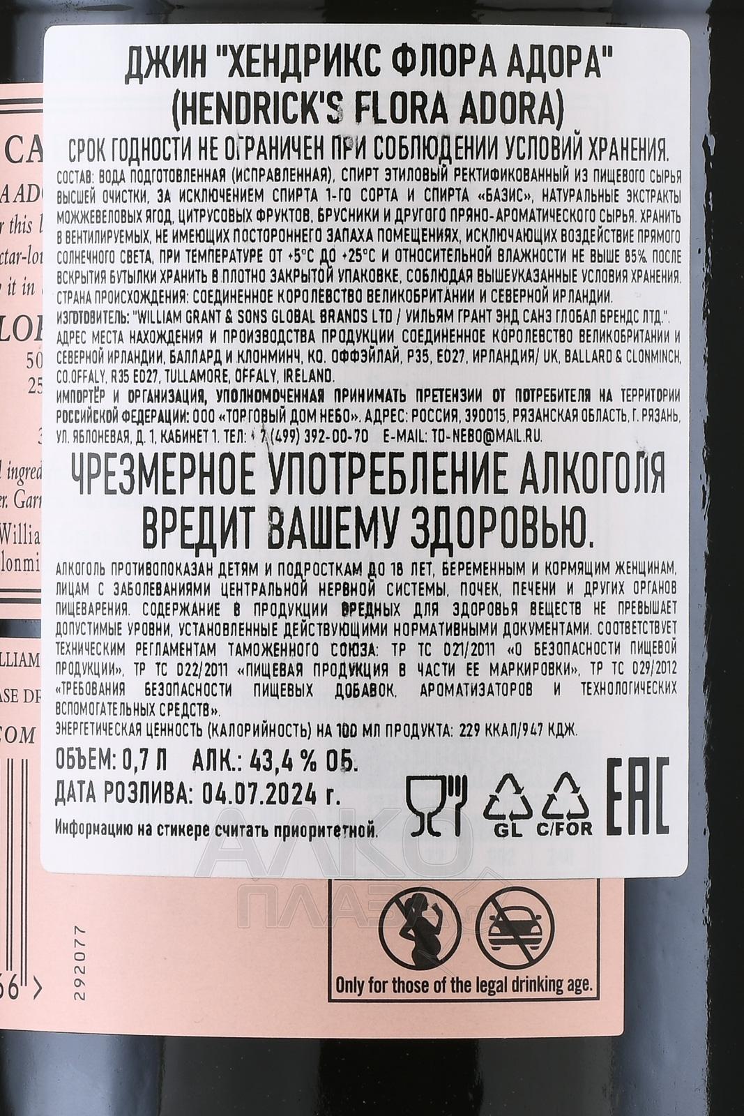 Hendrick’s Flora Adora - джин Хендрикс флора Адора 0.7 л