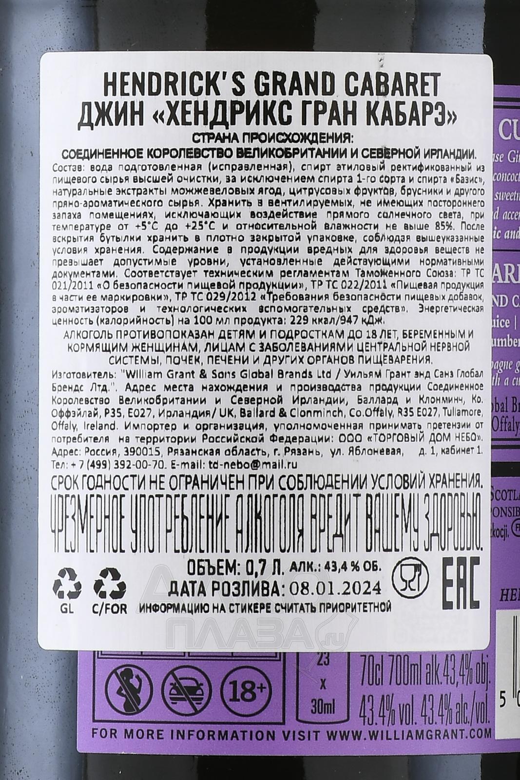 Hendrick’s Grand Cabaret - джин Хендрикс Гран Кабарэ 0.7 л