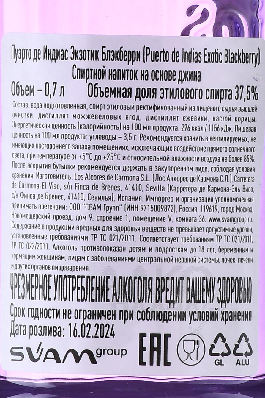Джин Puerto de Indias Exotic Blackberry 0,7 л создан в Севилье на базе натуральных растительных экстрактов. Производство основано на классической дистилляции с использованием можжевельника и ежевики, что придает алкоголю особую мягкость и фруктовый характер. Натуральные ягоды проходят длительную мацерацию и соединяются с классической спиртовой основой. Благодаря такому методу достигается яркий ягодный профиль без потери баланса. Напиток получил признание у ценителей, выделяется среди ароматизированных джинов и часто упоминается как один из лучших в своем сегменте.
