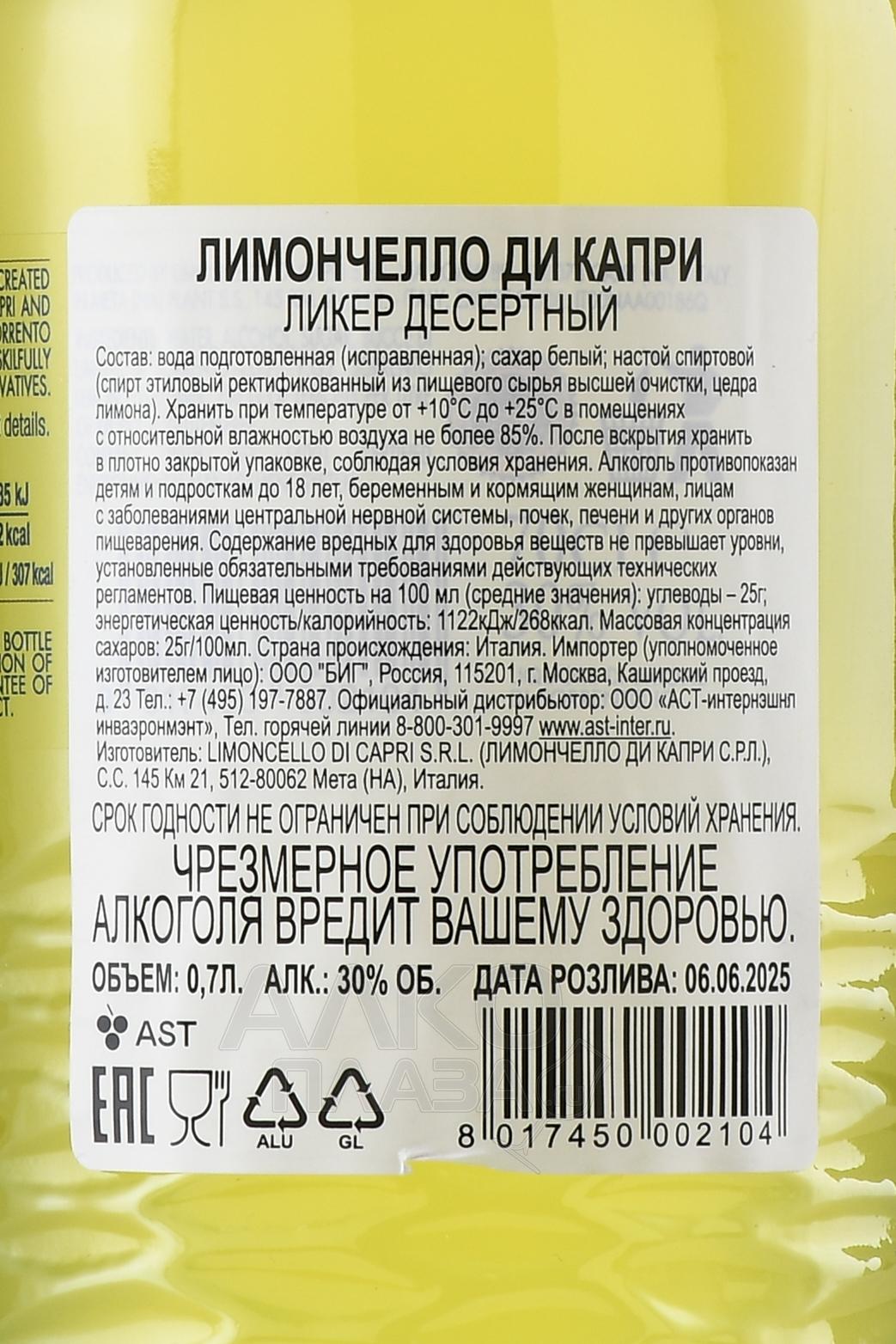 Limoncello di Capri - ликер Ди Капри Лимончелло 0.7 л