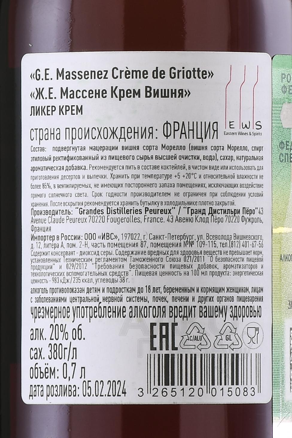 Massenez Creme De Griotte - ликер Массене Крем Вишня 0.7 л