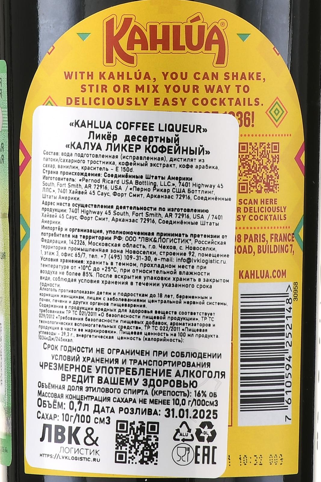 Kahlua - ликер Калуа 0.7 л