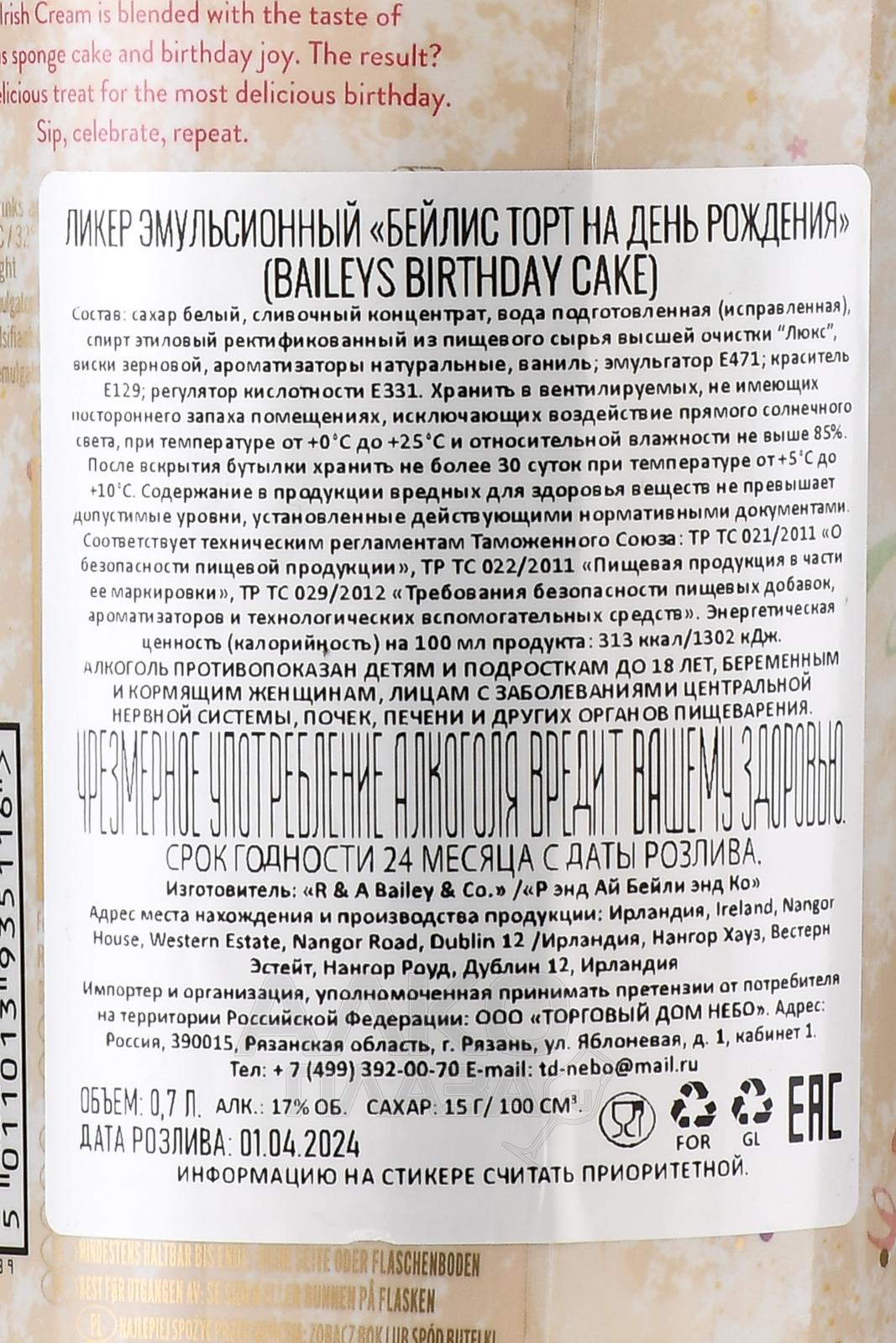 Baileys Birthday Cake - ликер Бэйлис Торт на День Рождения 0.7 л
