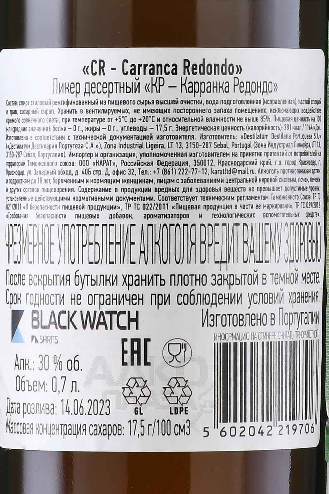 Carranca Redondo - ликер Карранка Редондо 0.7 л