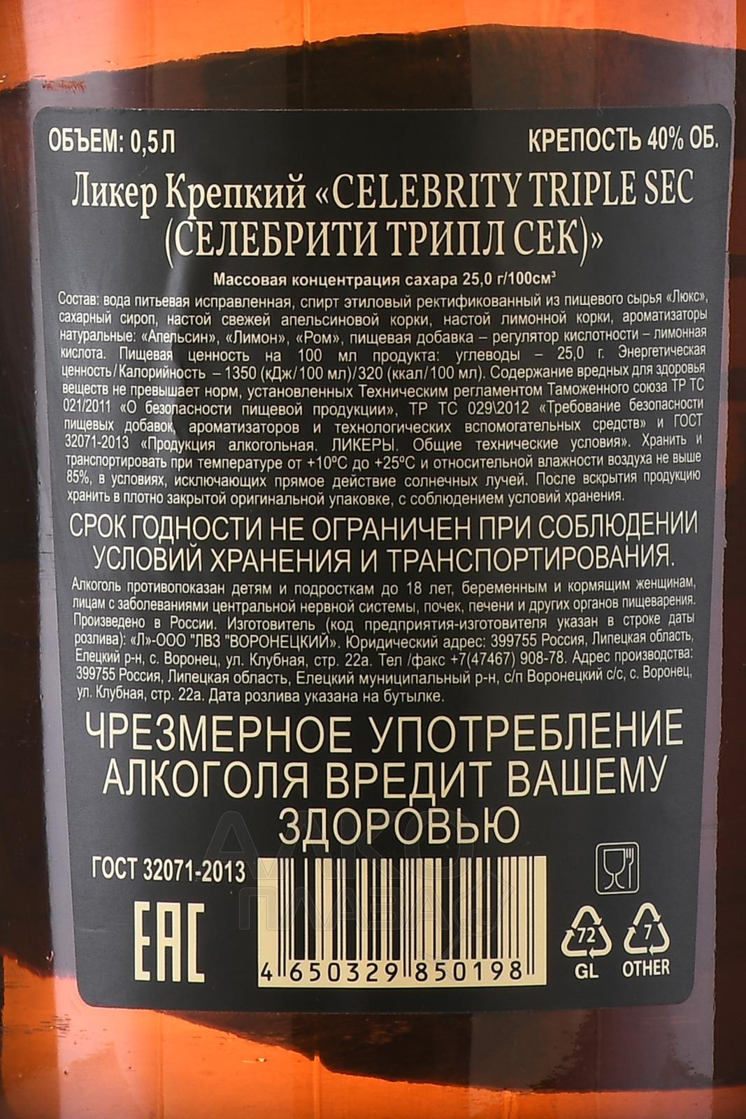 Ликер крепкий Селебрити Трипл Сек 0.5 л отличался ярким цитрусовым характером и изысканной чистотой вкуса. Его создавали на основе натуральных корок горьких и сладких апельсинов, которые предварительно сушили и выдерживали, чтобы сохранить насыщенность эфирных масел. Производители использовали метод тройной дистилляции, благодаря которому напиток приобрёл прозрачность и сбалансированную силу. Сочетание классических традиций и современного контроля качества позволило достичь гармонии между крепостью и утончённым ароматом.