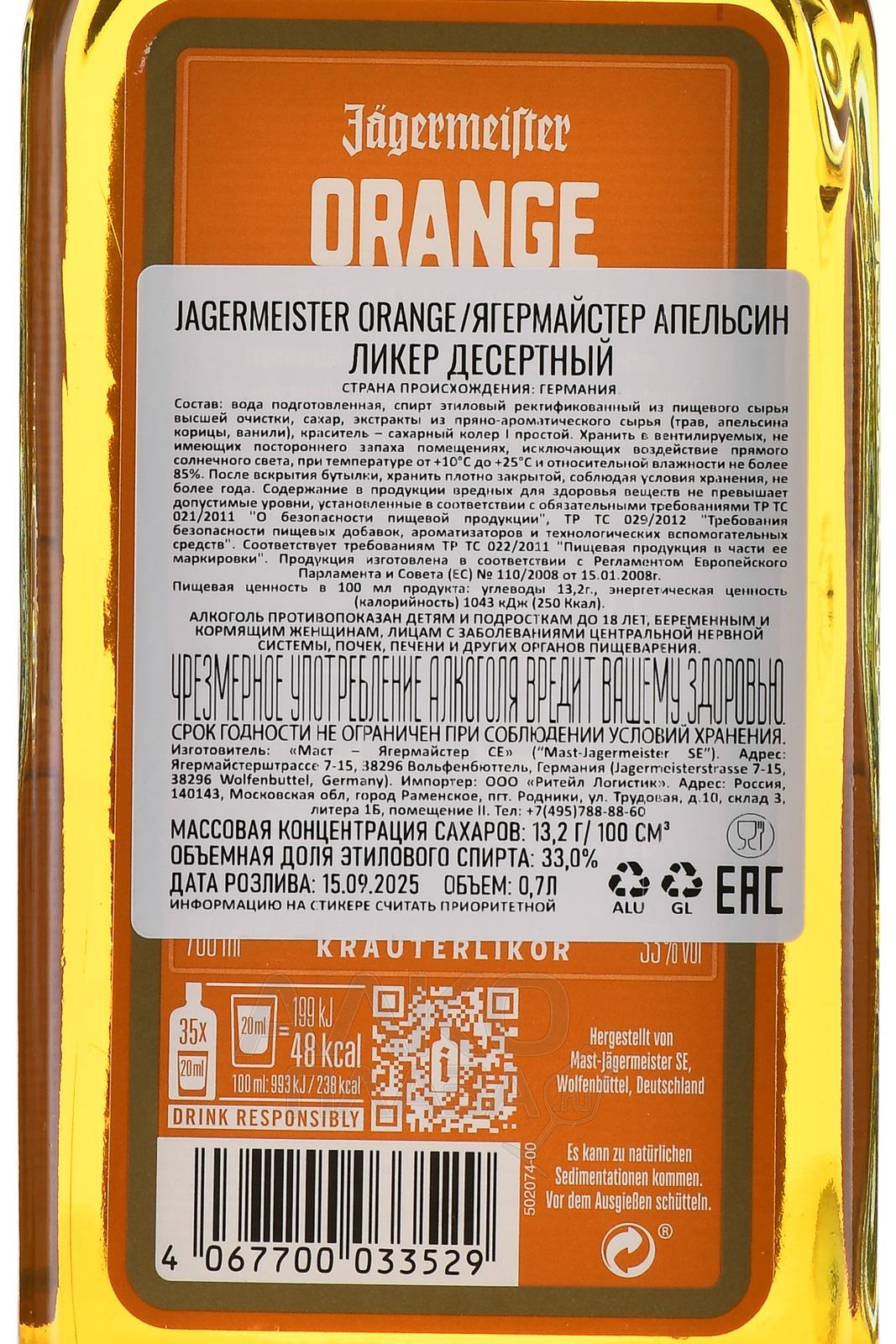 Jagermeister Orange - ликер Ягермайстер Апельсин 0.7 л