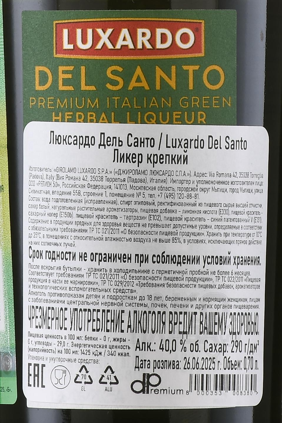 Luxardo Del Santo - ликер крепкий Люксардо Дель Санто 0.7 л