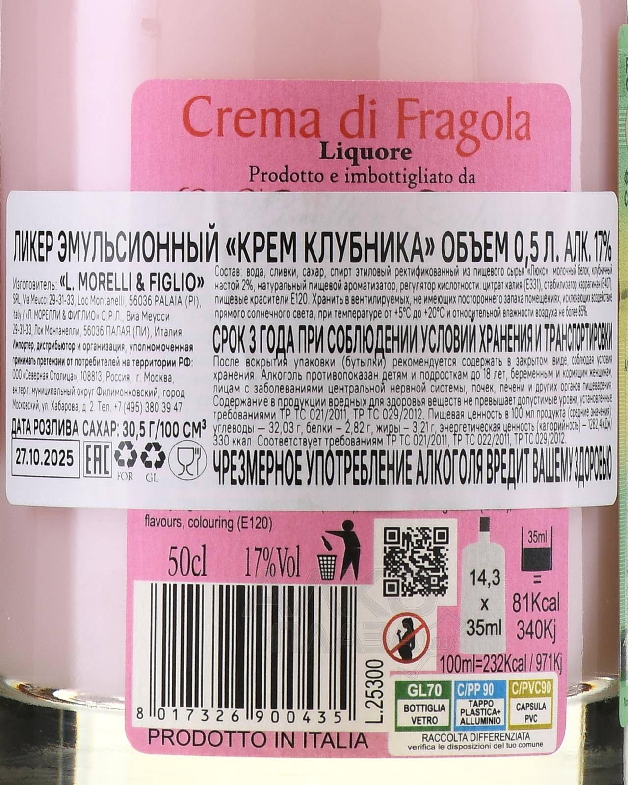Morelli Crema di Fragola - ликер эмульсионный Морелли Крем Клубника 0.5 л